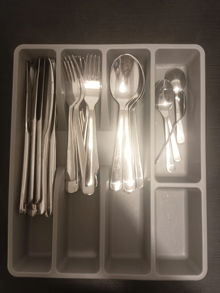 Full cutlery set in good condition with cutlery holder. (There are more teaspoons than pictures, currently in dishwasher).