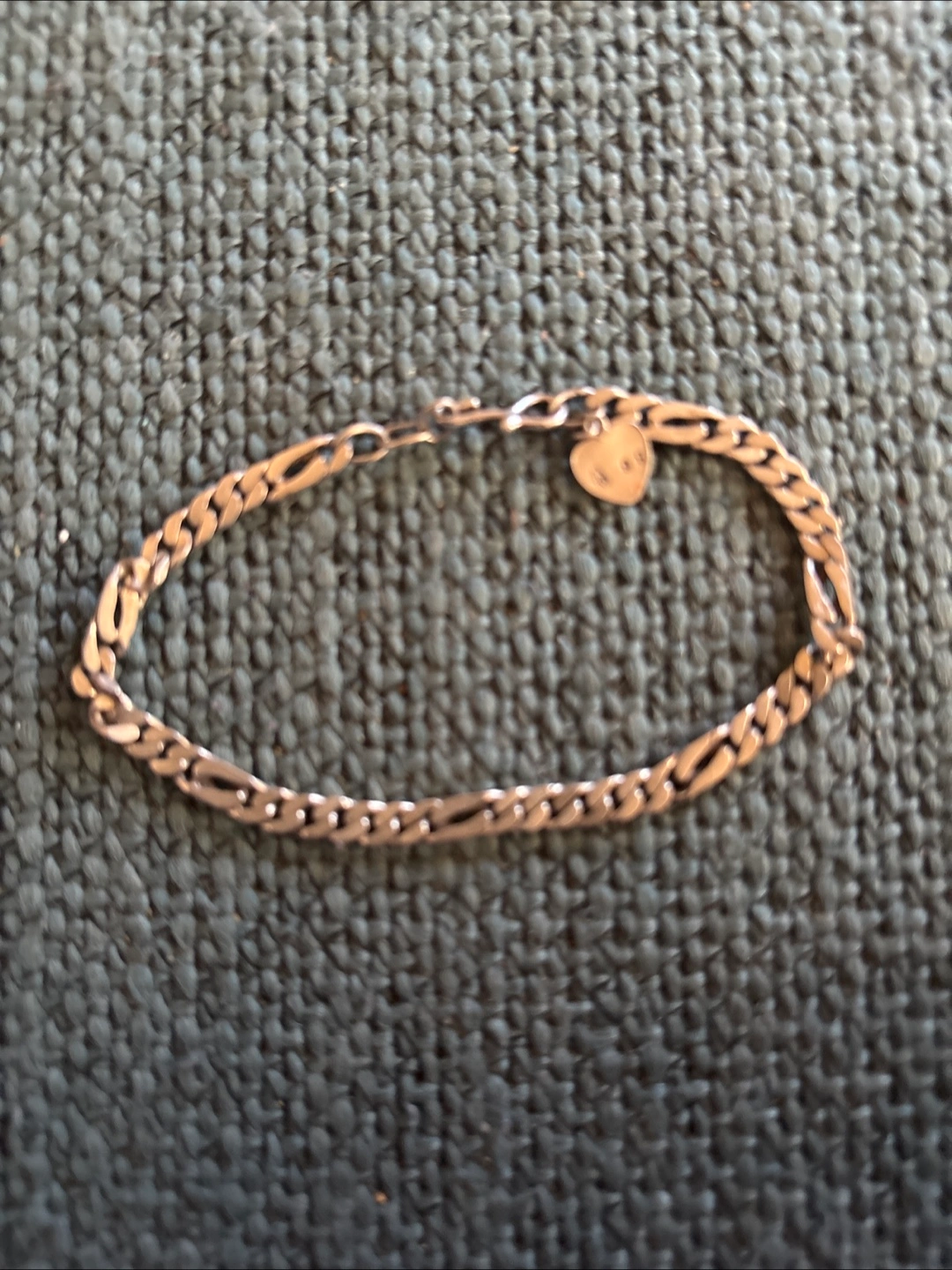Selling a delicate silver bracelet! It features a classic chain design with a sweet little heart charm attached. Perfect for adding a touch of elegance to any outfit. Note: Lighting makes it look different.