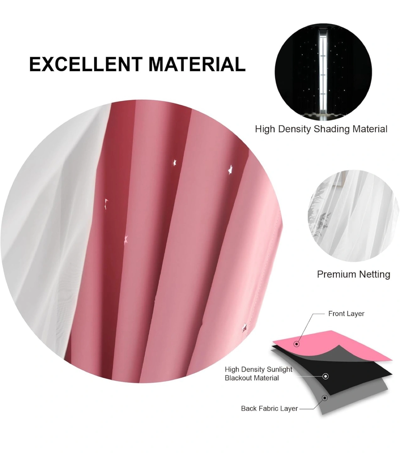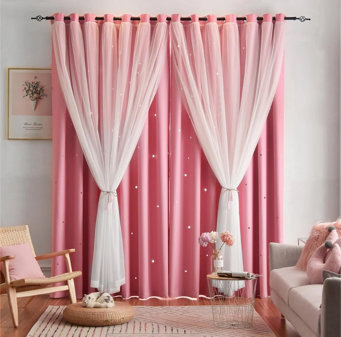 Adorable & gorgeous pink-star double layered curtains for kids room.