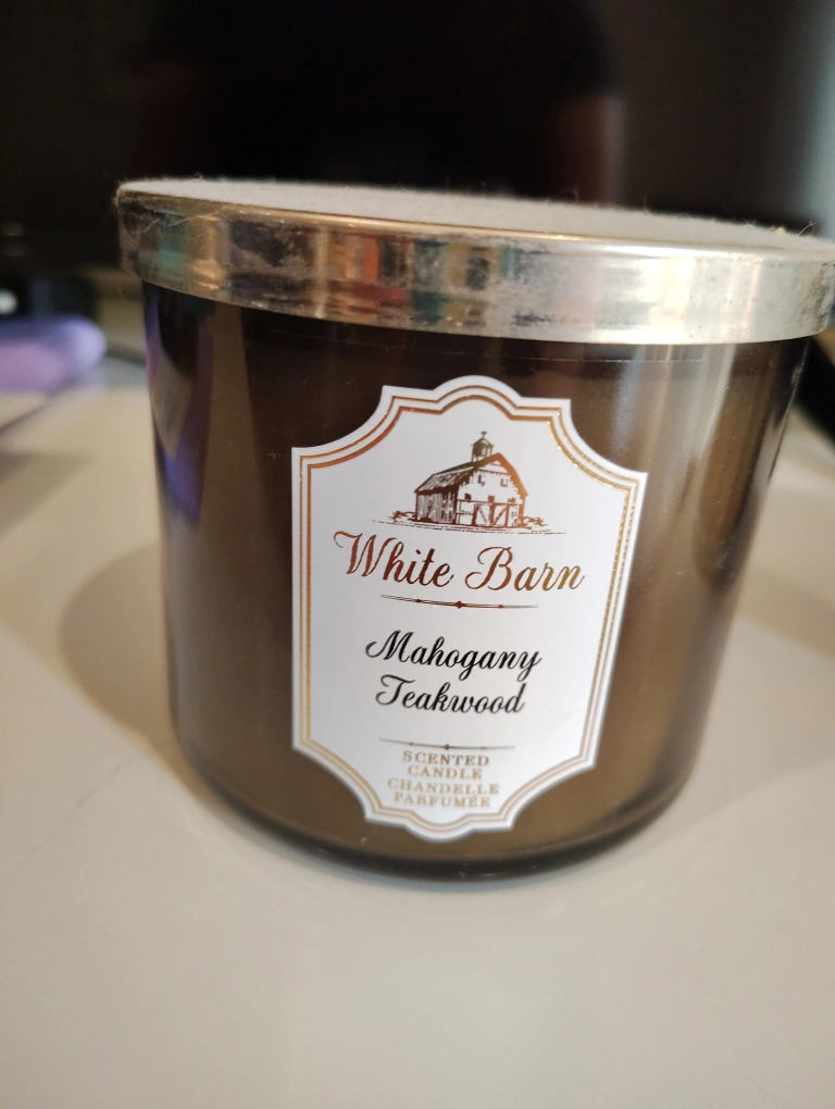 Selling a White Barn Mahogany Teakwood scented candle. It's a lovely candle that will fill your home with a warm and inviting scent