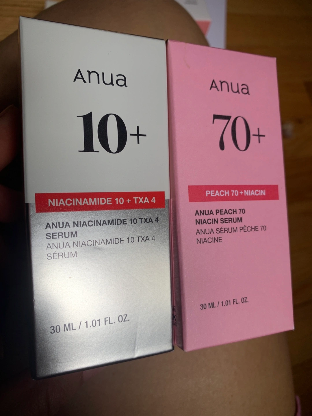 I have two Anua serums for sale! One is the Niacinamide 10+ TXA serum, and the other is the Peach 70 Niacin serum. Both are 30 ml/1.01 fl oz