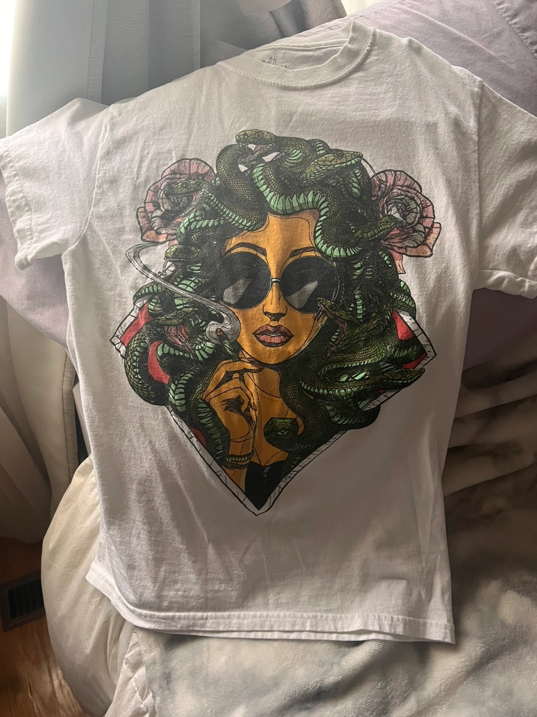 Threadless graphic tee featuring Medusa. Worn once, perfect condition. It's a size small and made of 100% cotton. The design is really eye-catching!