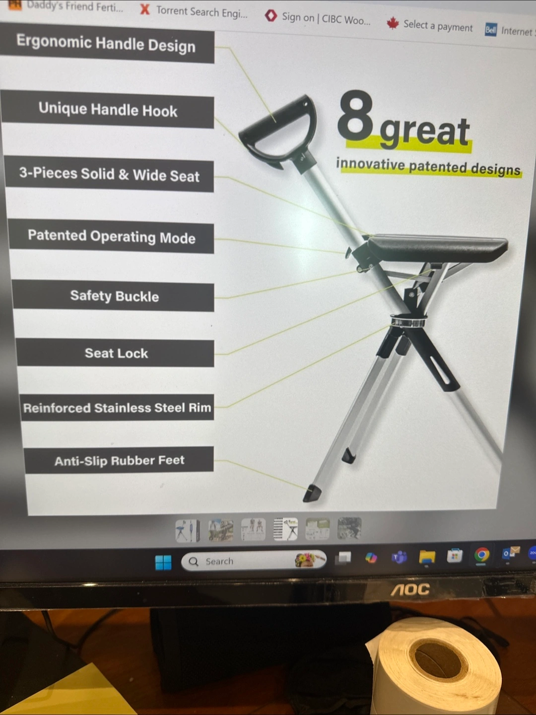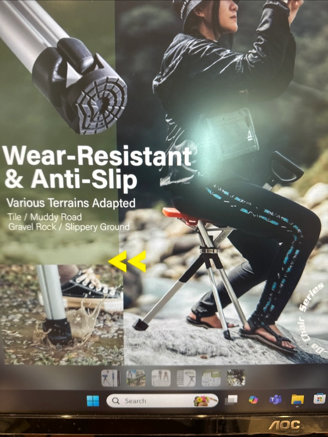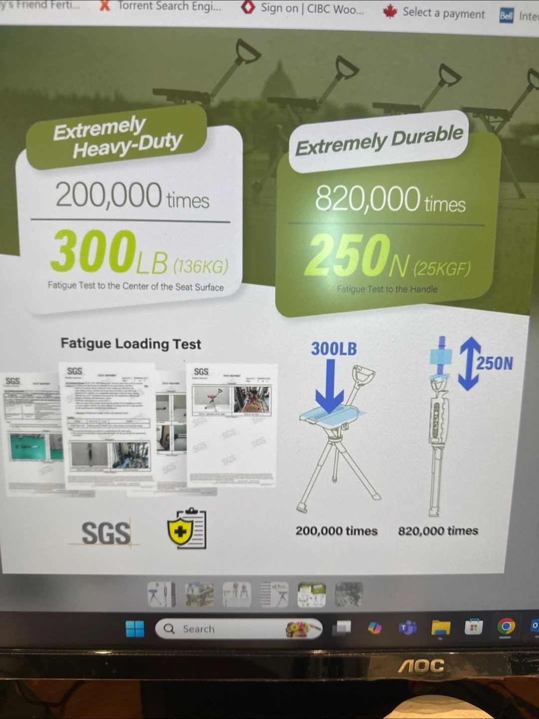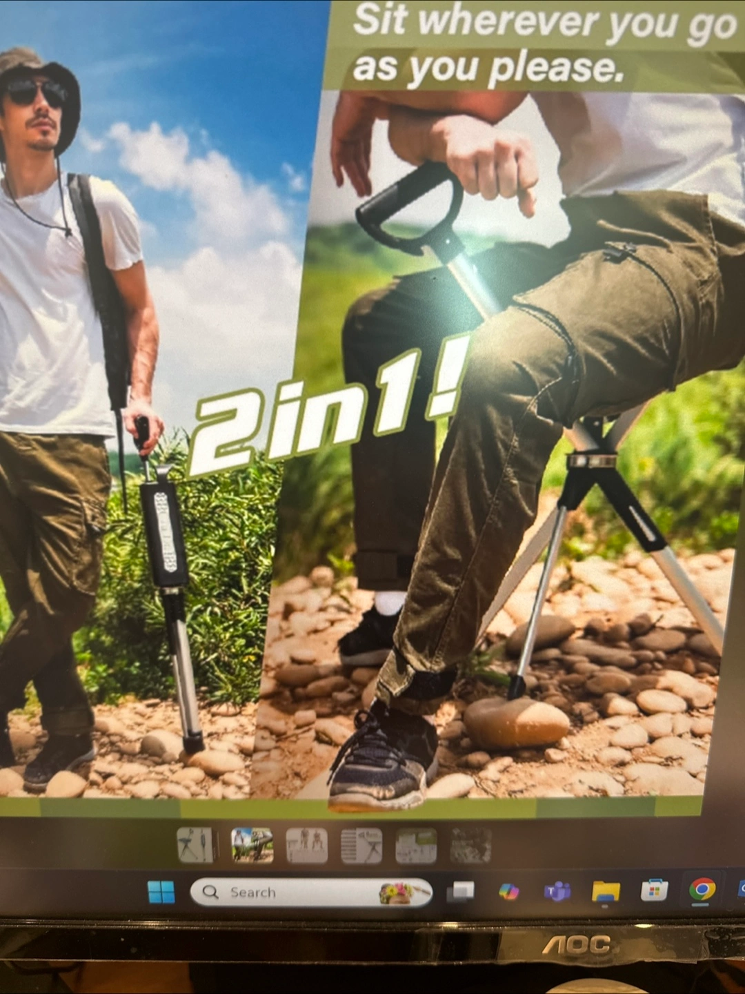 This is a 2-in-1 walking stick and seat! It lets you sit wherever you go. It has an ergonomic handle design and a unique handle hook. The seat is made of 3 pieces, solid and wide. It has a patented operating mode with a safety buckle and seat lock. It also has a reinforced stainless steel rim and anti-slip rubber feet. It's wear-resistant and anti-slip, and adapted for various terrains like tile, muddy roads, gravel rock, and slippery ground. It's extremely heavy-duty and durable, tested to 300 lbs (136kg) on the seat surface and 250N (25KGF) on the handle