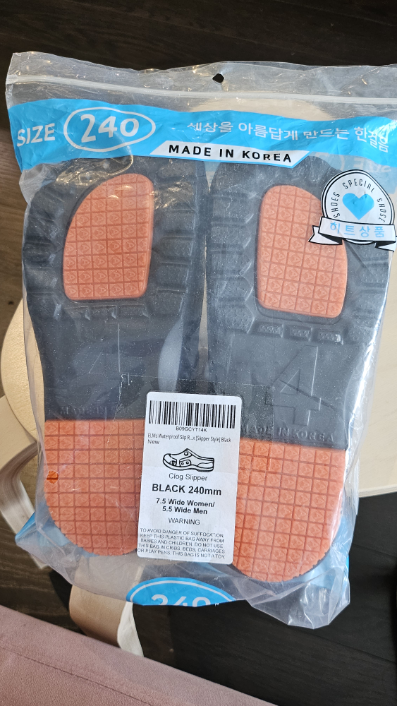 These kitchen shoes is brand new and come in their original packaging! They're size 7.5 wide for women or 5.5 wide for men.