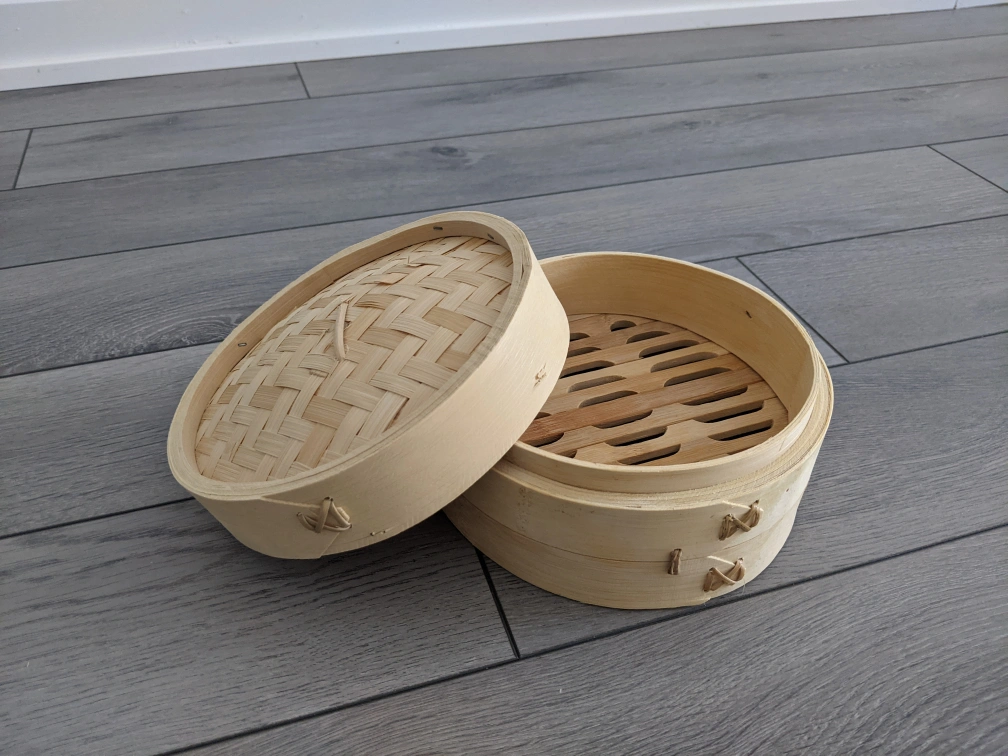 This brand new bamboo steamer is perfect for gently cooking vegetables, dim sum, and more, offering a traditional way to prepare healthy and delicious meals. The compact size makes it ideal for small kitchens or individual servings.