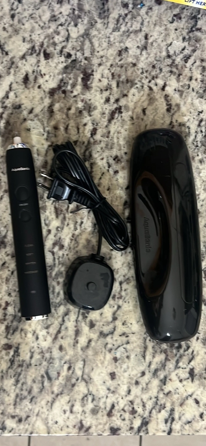 Selling a black AquaSonic electric toothbrush. It comes with the charger and a travel case. It is in great condition and ready for a new home!