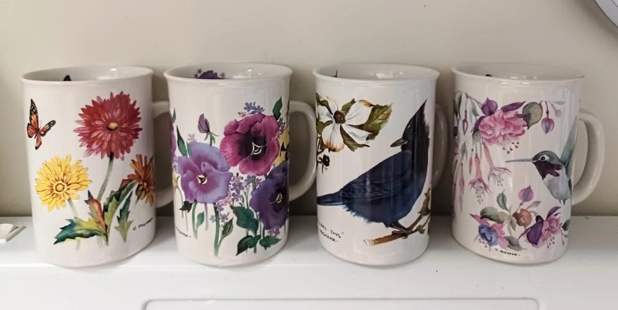 Beautiful set of 4 vintage Valerie Pfeiffer mugs