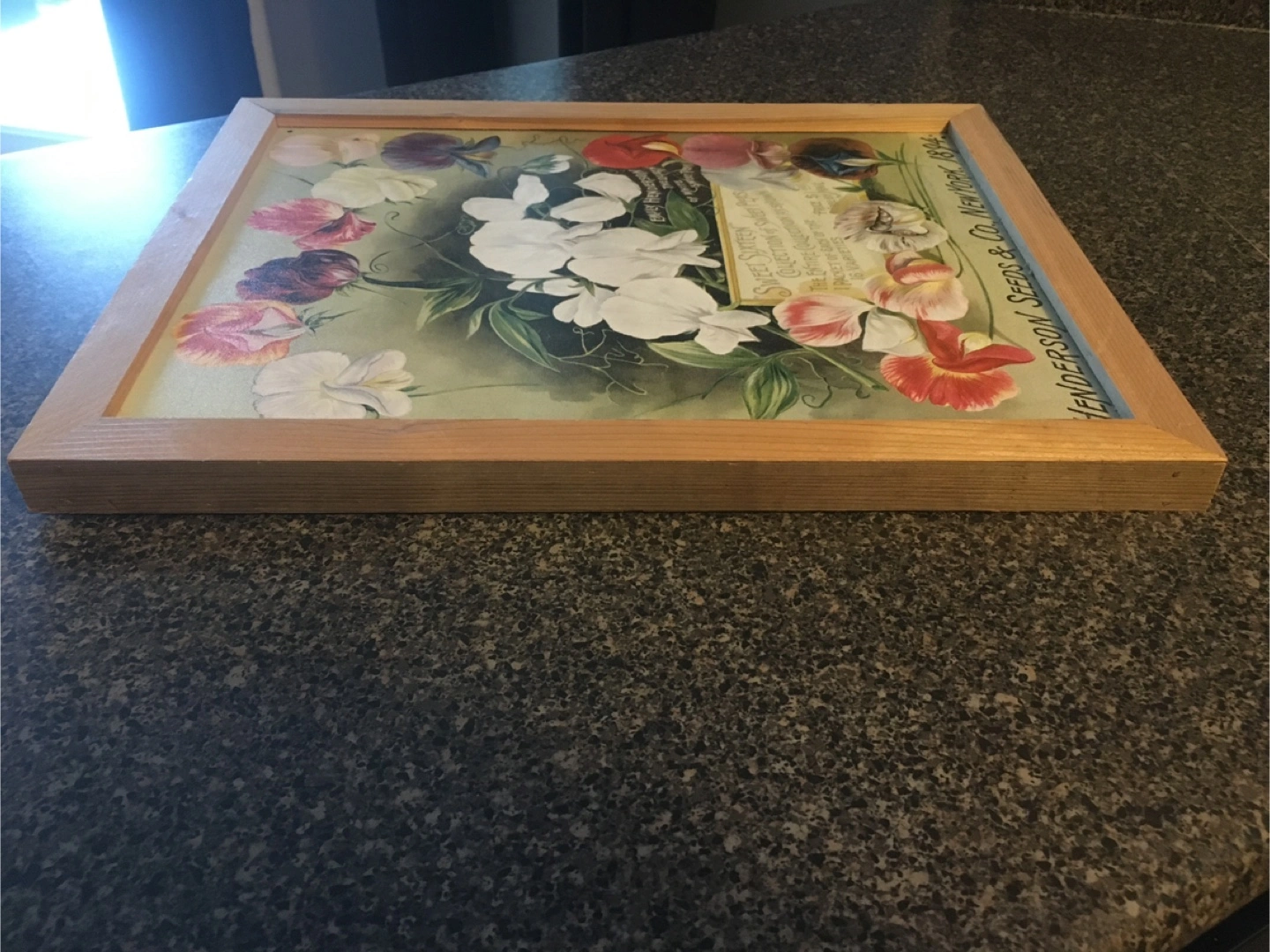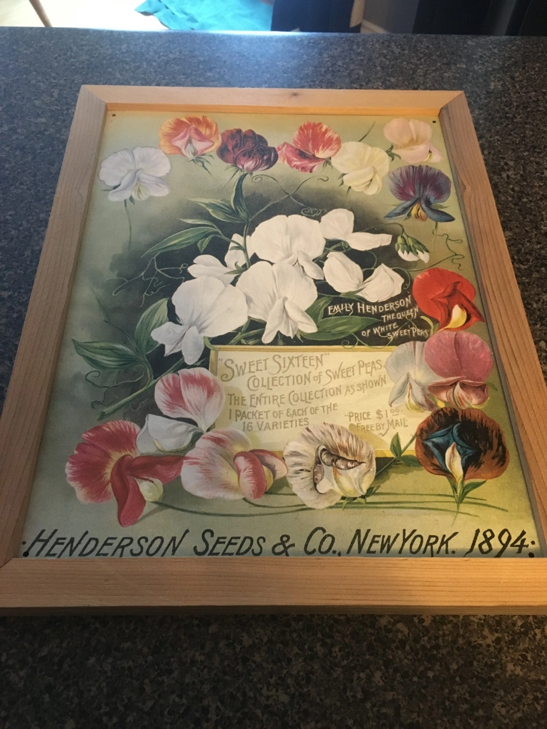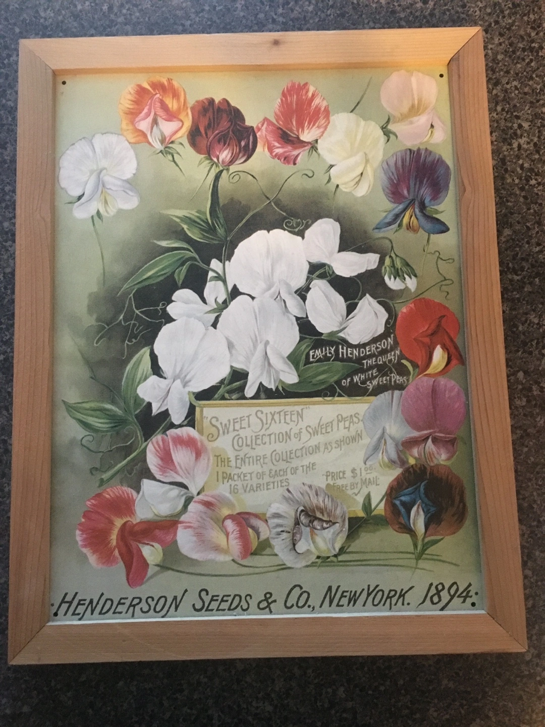 Here's a charming vintage tin print replica from Henderson Seeds & Co., dating back to 1894! It features a beautiful floral design with sweet peas. A lovely piece to add some vintage flair to your home decor
