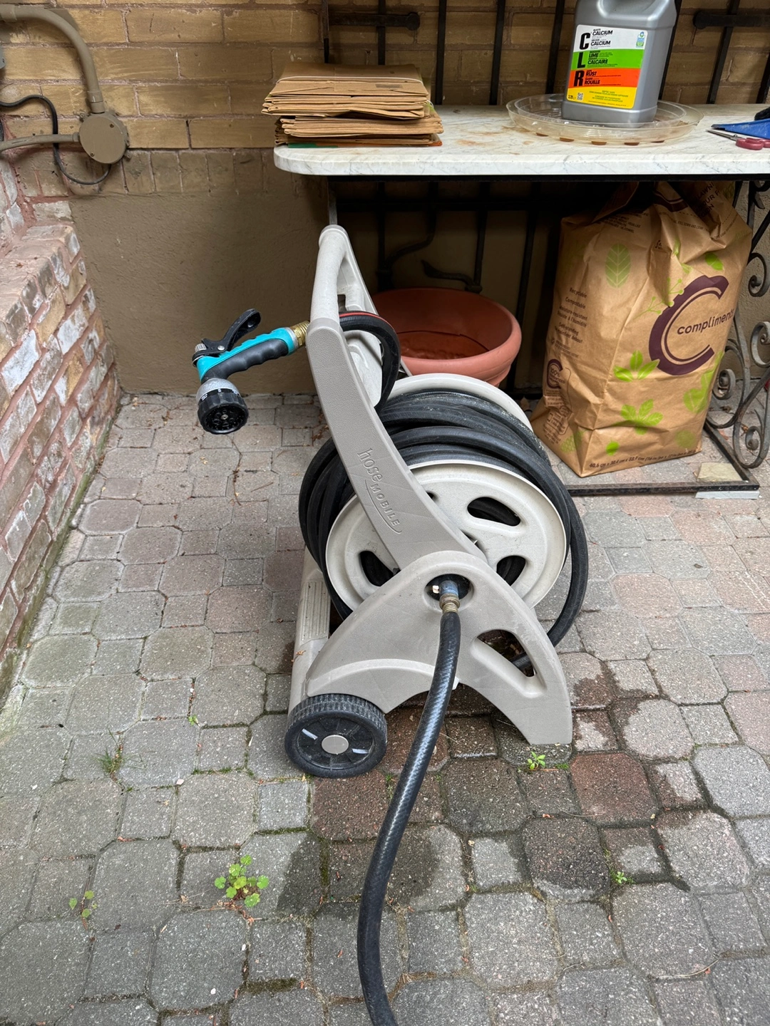 Mobile Garden Hose Reel Cart with Hose
