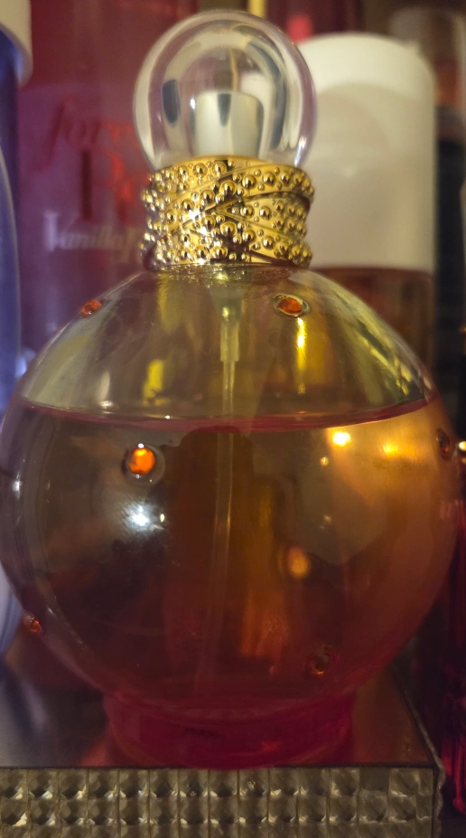 Selling a bottle of Britney Spears Hidden Fantasy perfume! It has top notes of melon, lily, and freesia, middle notes of tiare flower, tuberose, and jasmine, and base notes of musk, sandalwood, and orris root