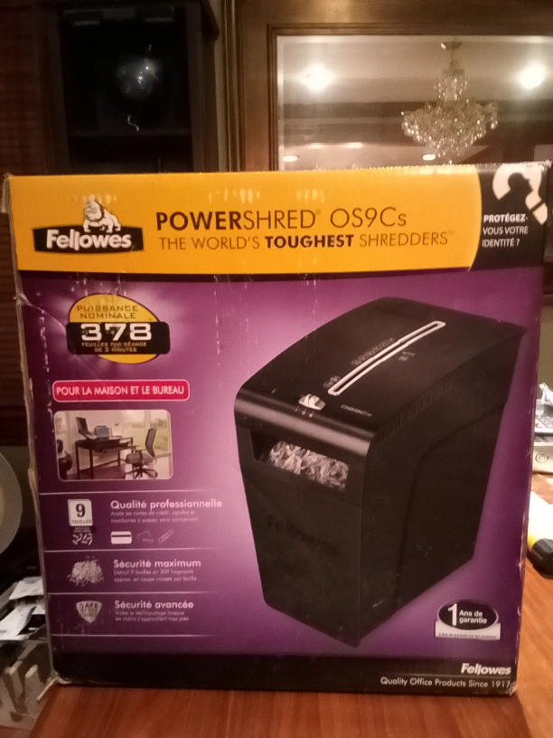 A ( New) Fellowes Powershred OS9Cs Paper shredder. Comes in its original box.