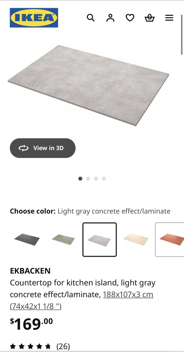 Looking to upgrade your kitchen? I'm selling an IKEA EKBACKEN countertop in the light gray concrete effect/laminate finish. It measures 188x107x3 cm (74x42x1 1/8 "). Originally bought for $169.