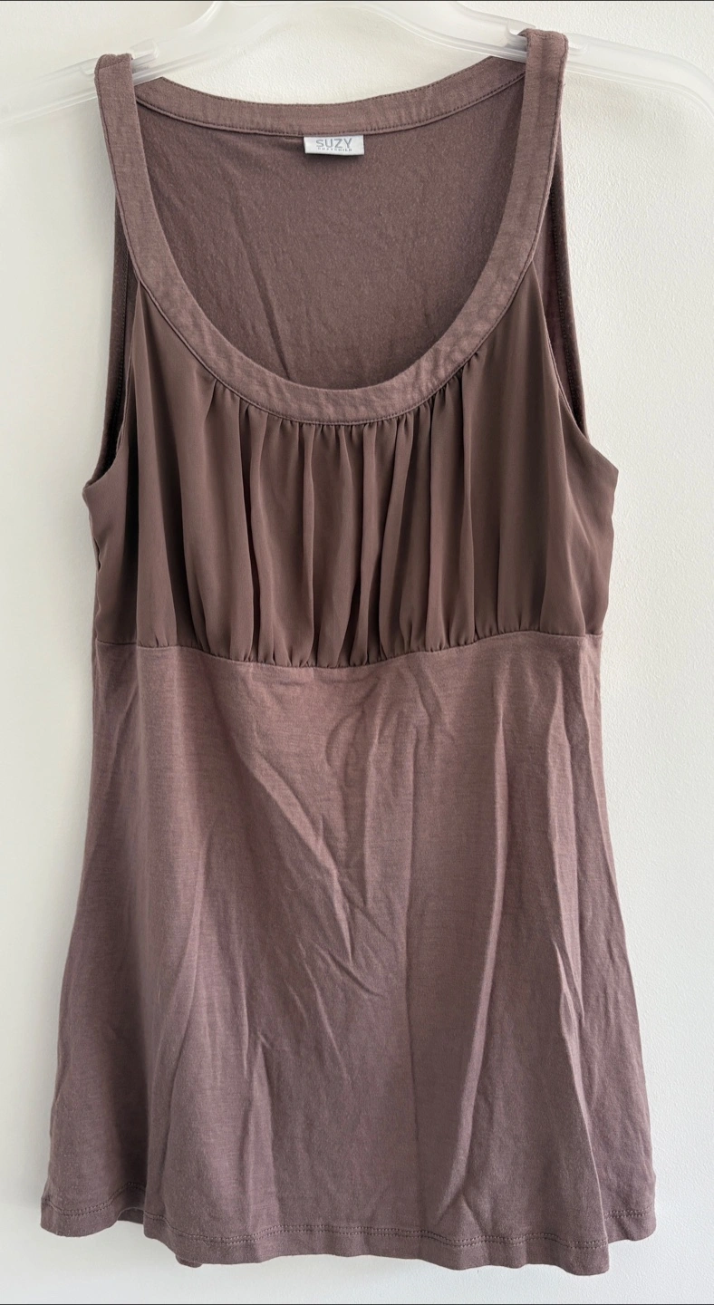 A gently used beautiful tank top from Suzy Shier. It's a size S/m and would be a great addition to your summer wardrobe!
