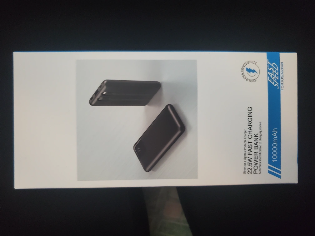 Selling a slim and lightweight 22.5W fast charging power bank with 10000mAh capacity. It automatically identifies the charging device, making it compatible with both iOS and Android devices. Great for on-the-go charging!
