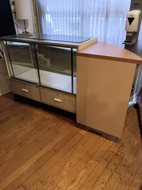 Selling a glass show case. Excellent condition. Perfect for retail jewelry display. custom made 3 piece show case. has lights inside the display area. plug π in light.