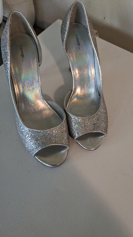 Selling a pair of George brand heels in size 8. These are covered in silver glitter and would be perfect for a party or special occasion!