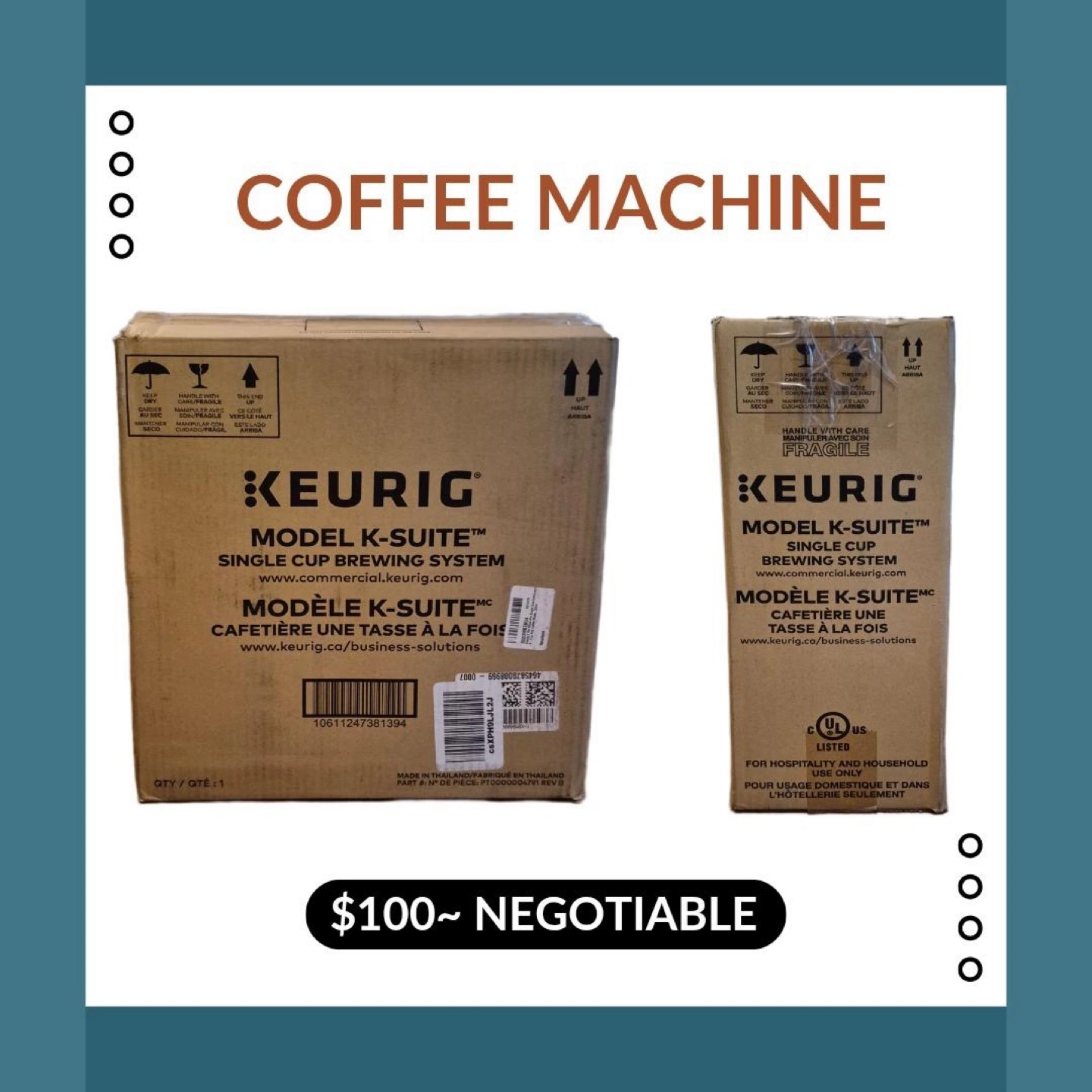Selling a Keurig K-Suite single-cup brewing system. It's in great condition and ready to make your mornings easier! The box is included. Originally priced around $100.