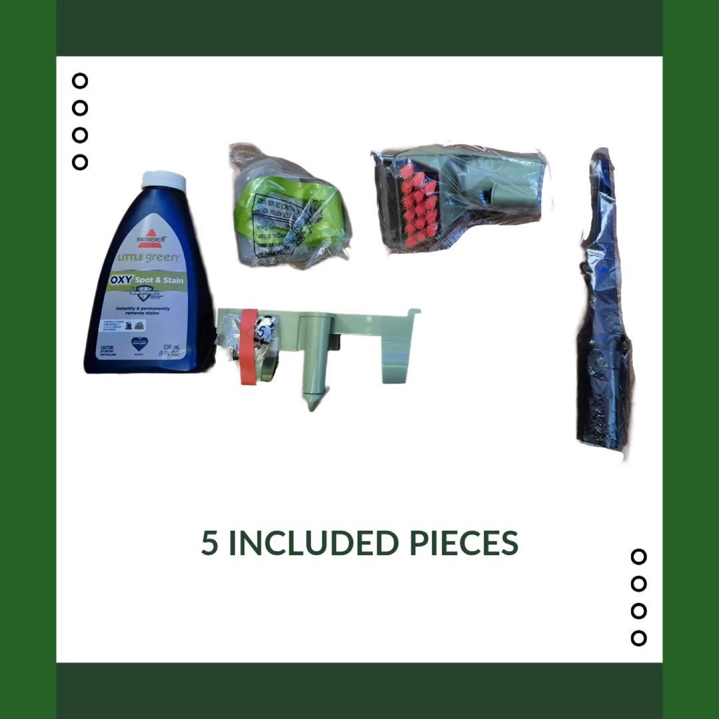 Selling a Bissell Little Green portable deep cleaner, model 1400B! It comes with the original box and several included pieces for different cleaning needs. This portable cleaner is great for tackling spots and stains around the house, making it a handy tool to have on hand