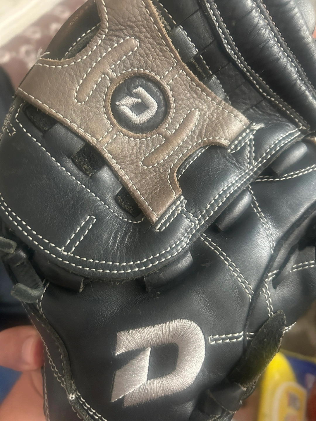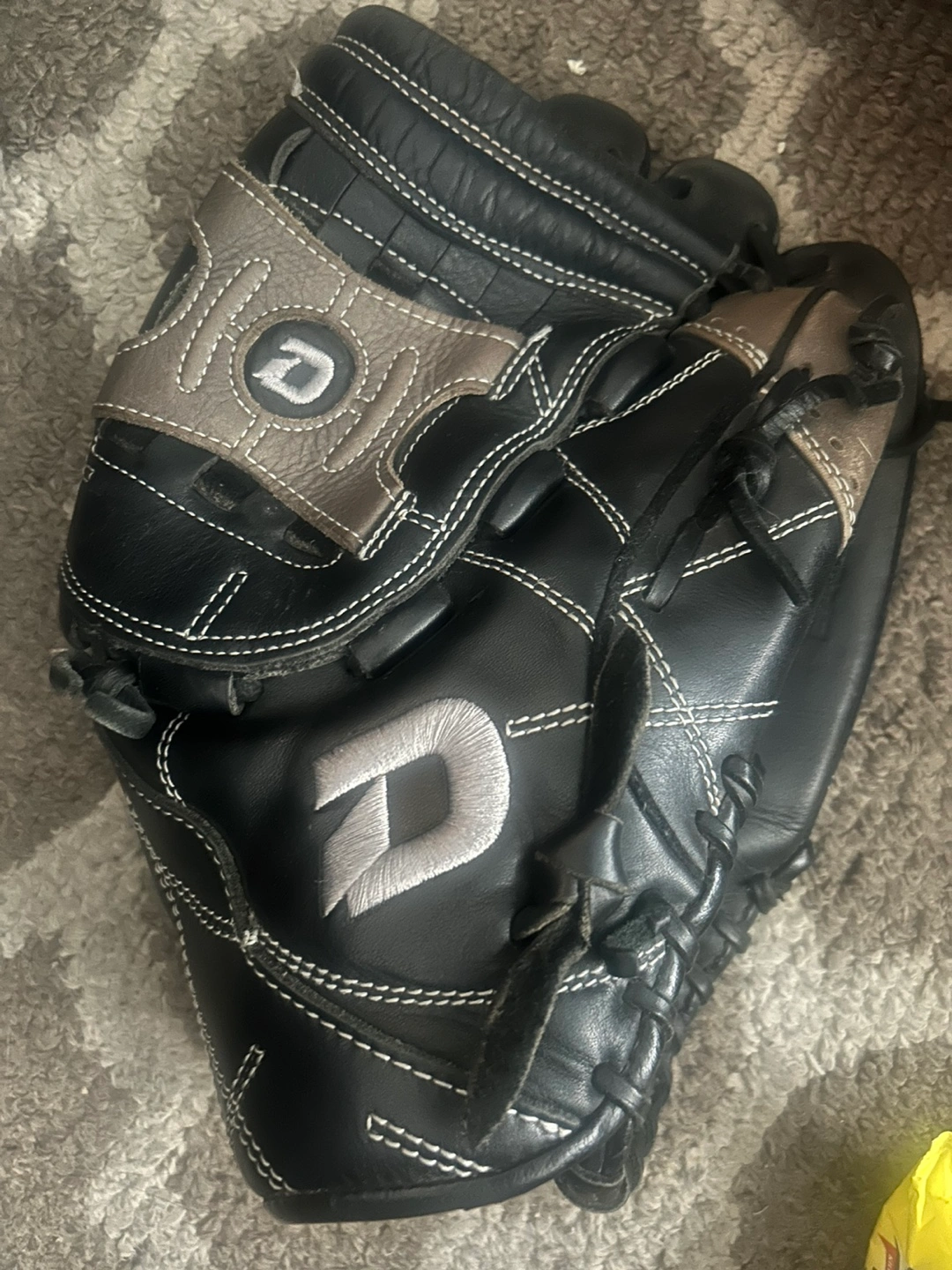 Selling a Diablo baseball glove. It's black with grey accents and white stitching. It looks like it's in good shape and ready for the season!