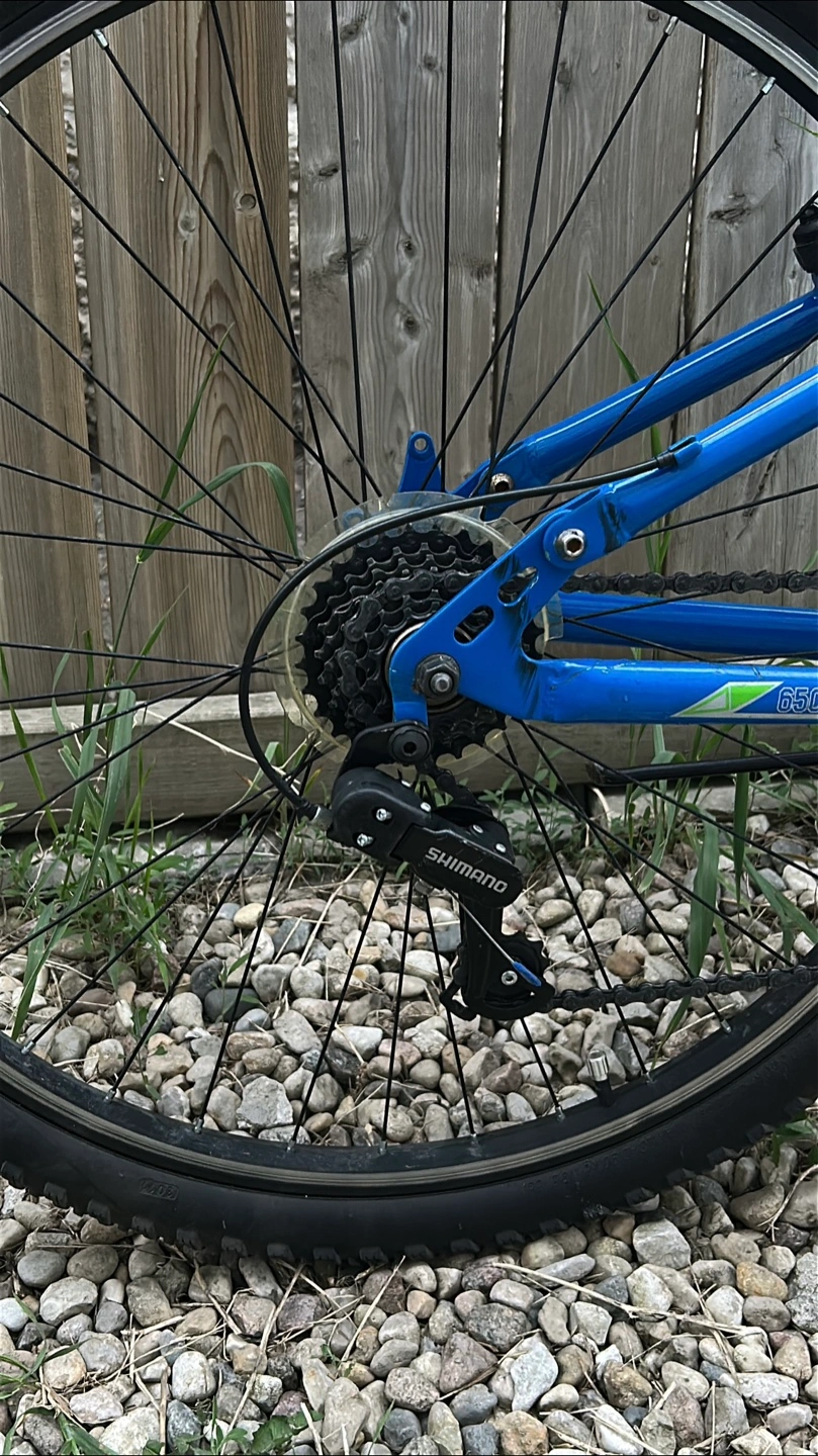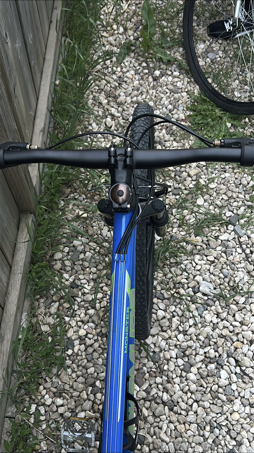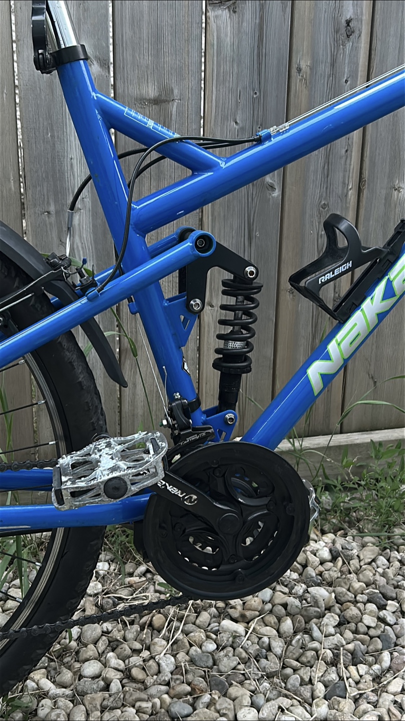 Selling a Nakamura Monster mountain bike in blue. It features a full suspension system for a smoother ride on trails. The bike has Shimano components and is ready for your next adventure!