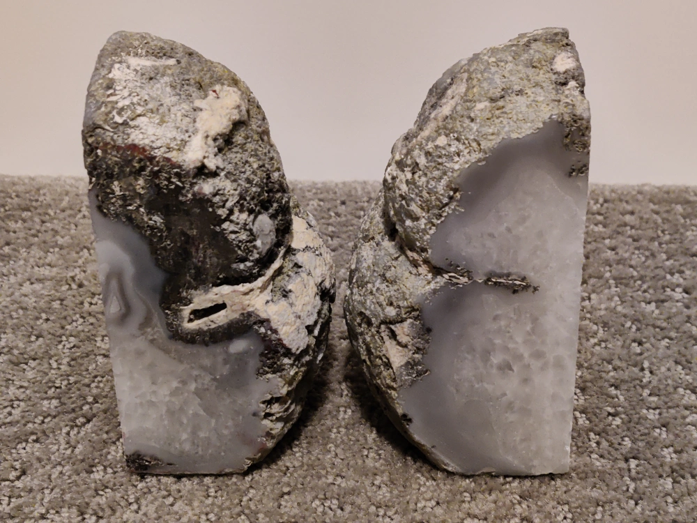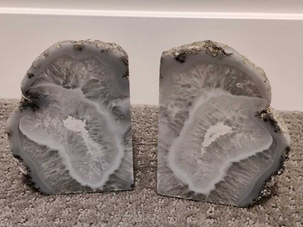 Heavy Pair Natural Agate Geode Stone Book Ends Holder - Bookends