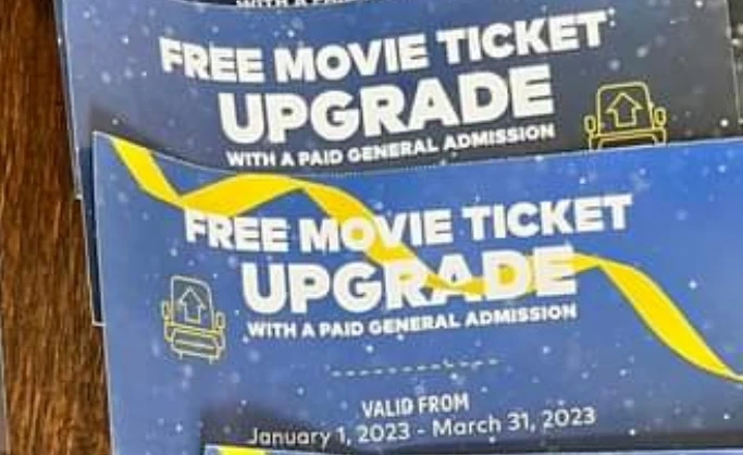 2 coupons for a free upgrade with paid general admission, coupon works to upgrade your general admission to 3D, VIP, etc. expires March 31st