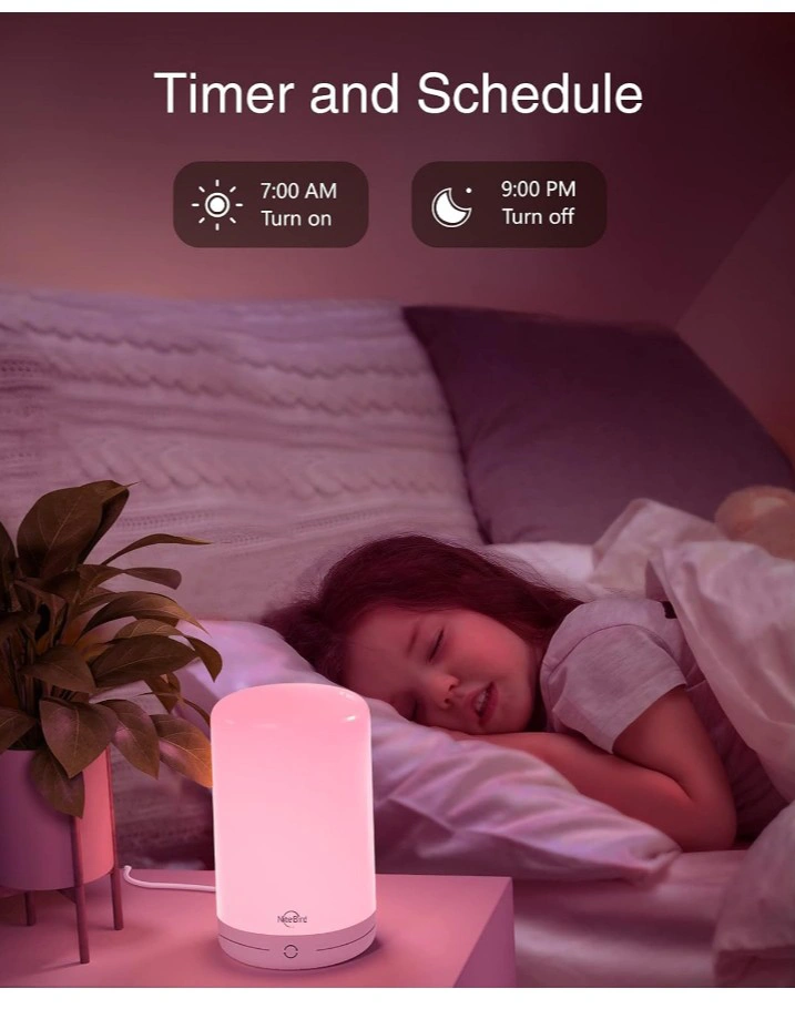 I'm selling a Gosund Smart Bedside Lamp that can display 16 million colours! It works with Amazon Alexa and Google Assistant for hands-free voice control. You can also set a timer and schedule, and control the lamp using your smartphone. It's perfect for creating a relaxing atmosphere in your bedroom or living room