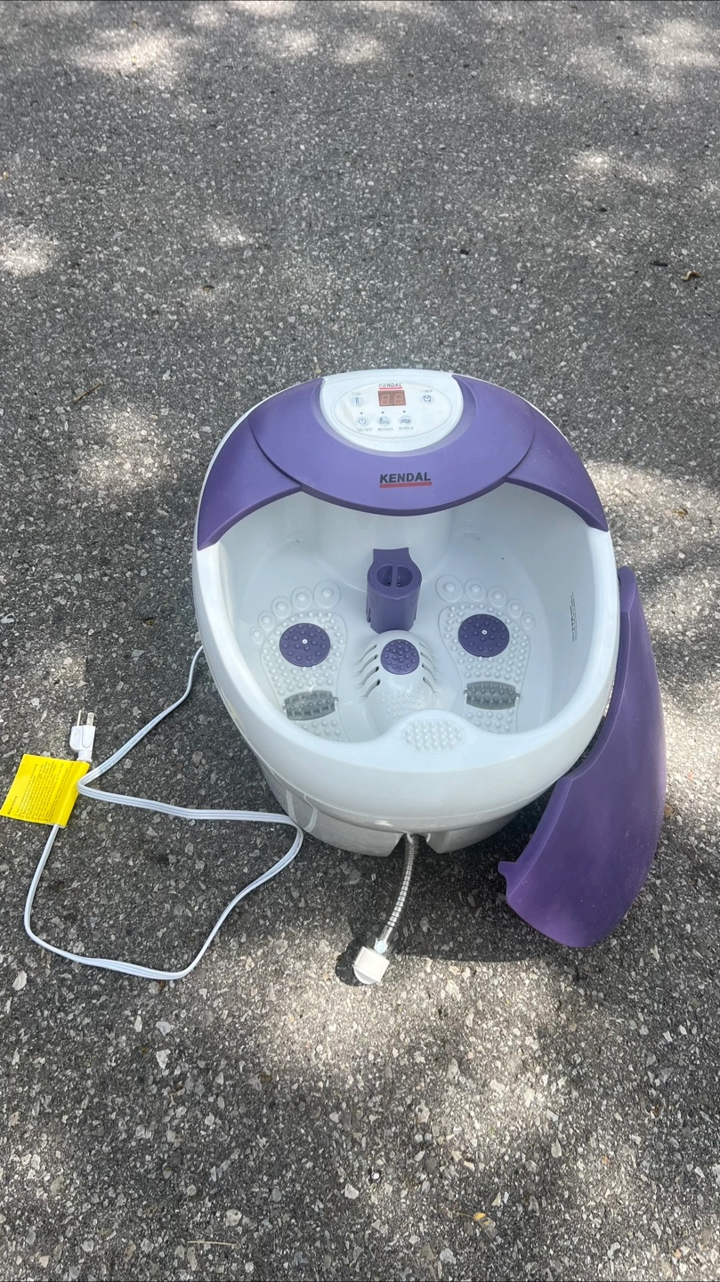Selling a Kendal foot spa! It comes with an LED display, a herbal diffuser, a PTC heater, moving rollers, and a drainage tube. The box is included too!