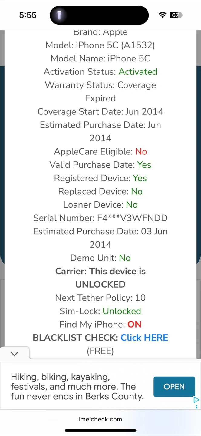 Selling a white Apple iPhone 5C (Model A1532). It's unlocked and ready to go! Please note that the phone is disabled and needs to be connected to iTunes.
