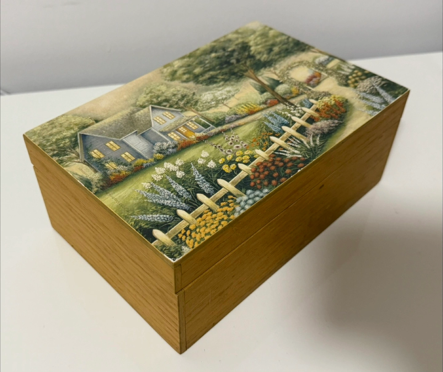 Wooden Keepsake Box with Garden Scene