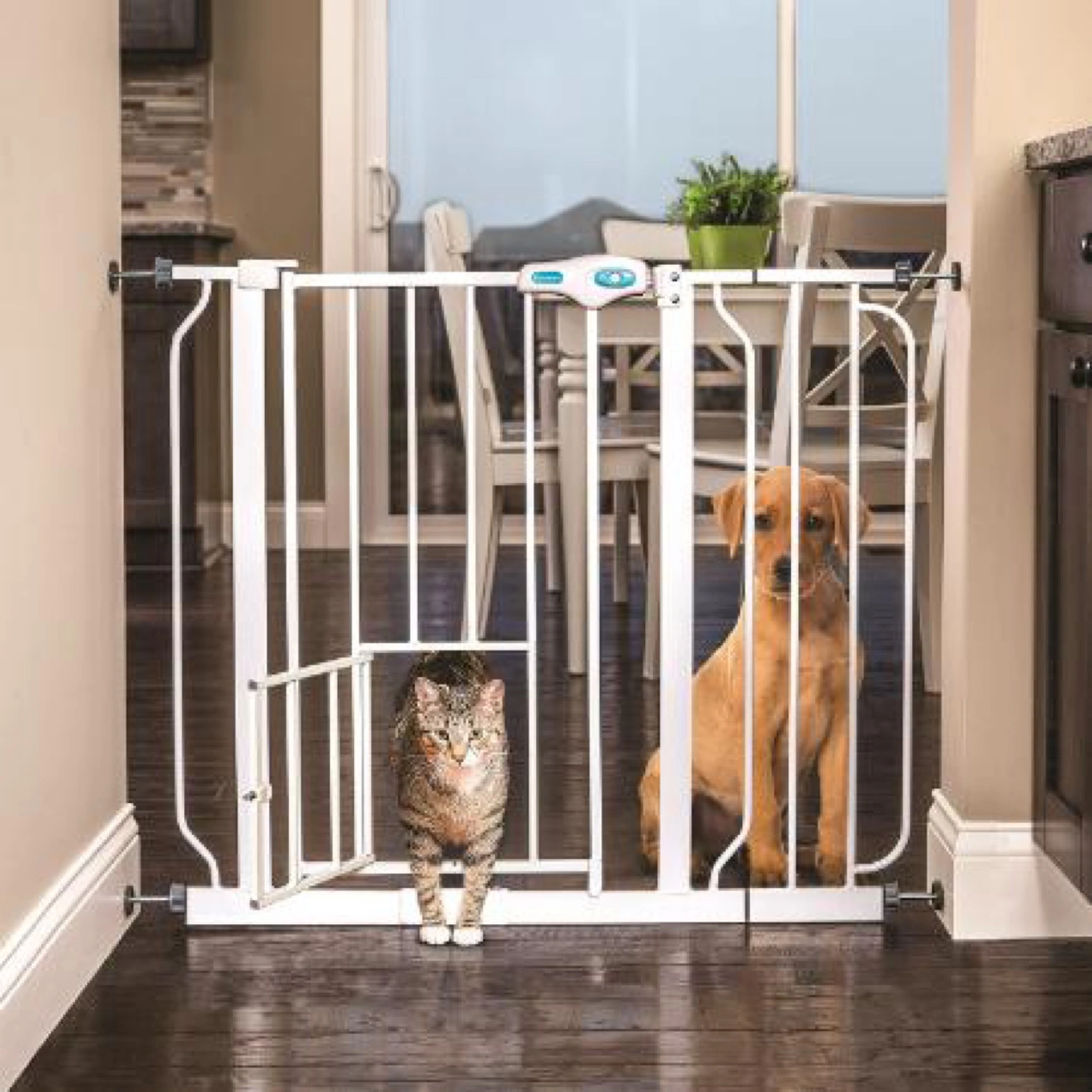 The Carlson Assembly Extra Wide Walk-Thru Pet Gate is a convenient, chew-proof way to contain and protect both your pet and home. The 30" high gate is made of an all-steel construction and can be operated with ease. It is specifically designed to make passing through the gate a breeze.