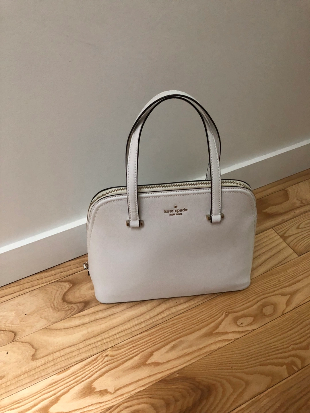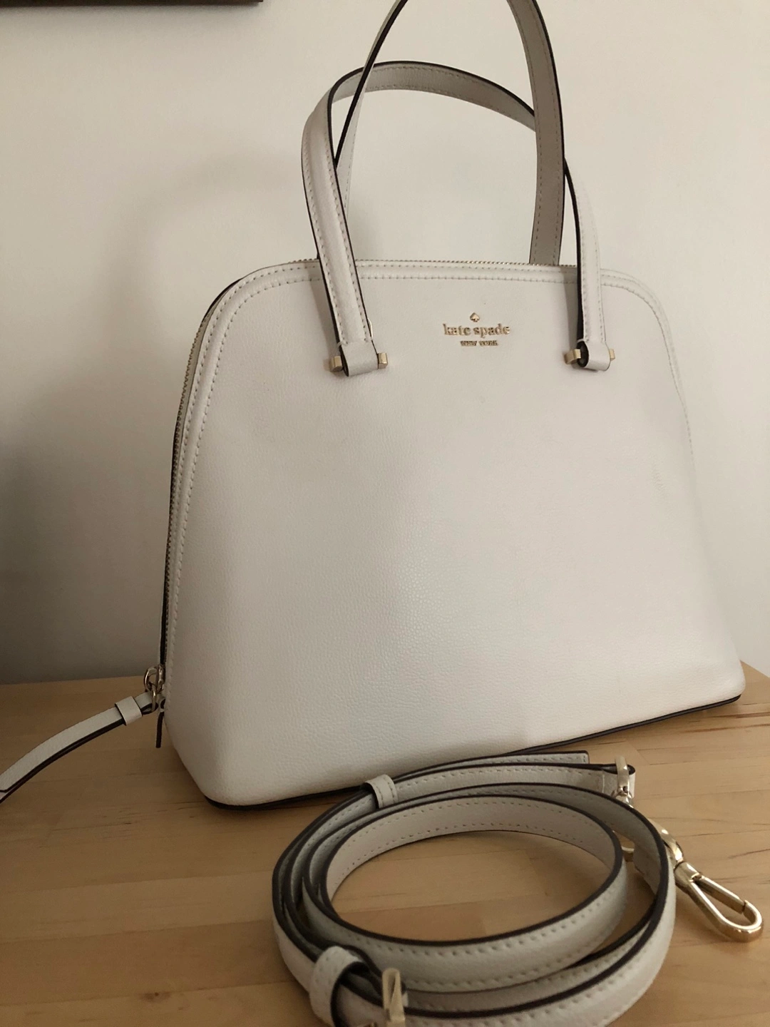Kate Spade dome satchel in white. It's in great condition and comes with a detachable strap for crossbody wear. Perfect for everyday use!