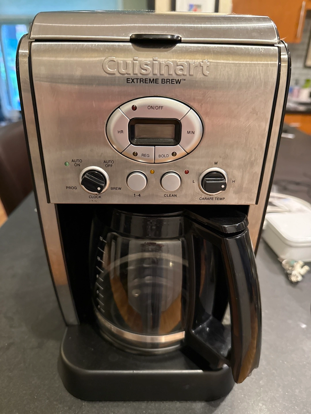 Cuisinart Extreme Brew coffee maker and carafe. It can brew up to 12 cups.