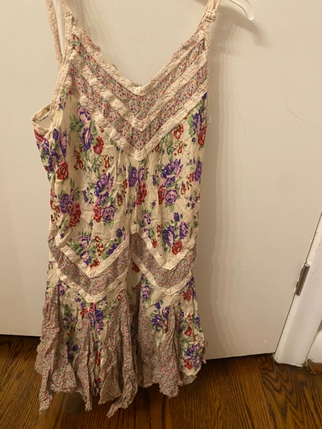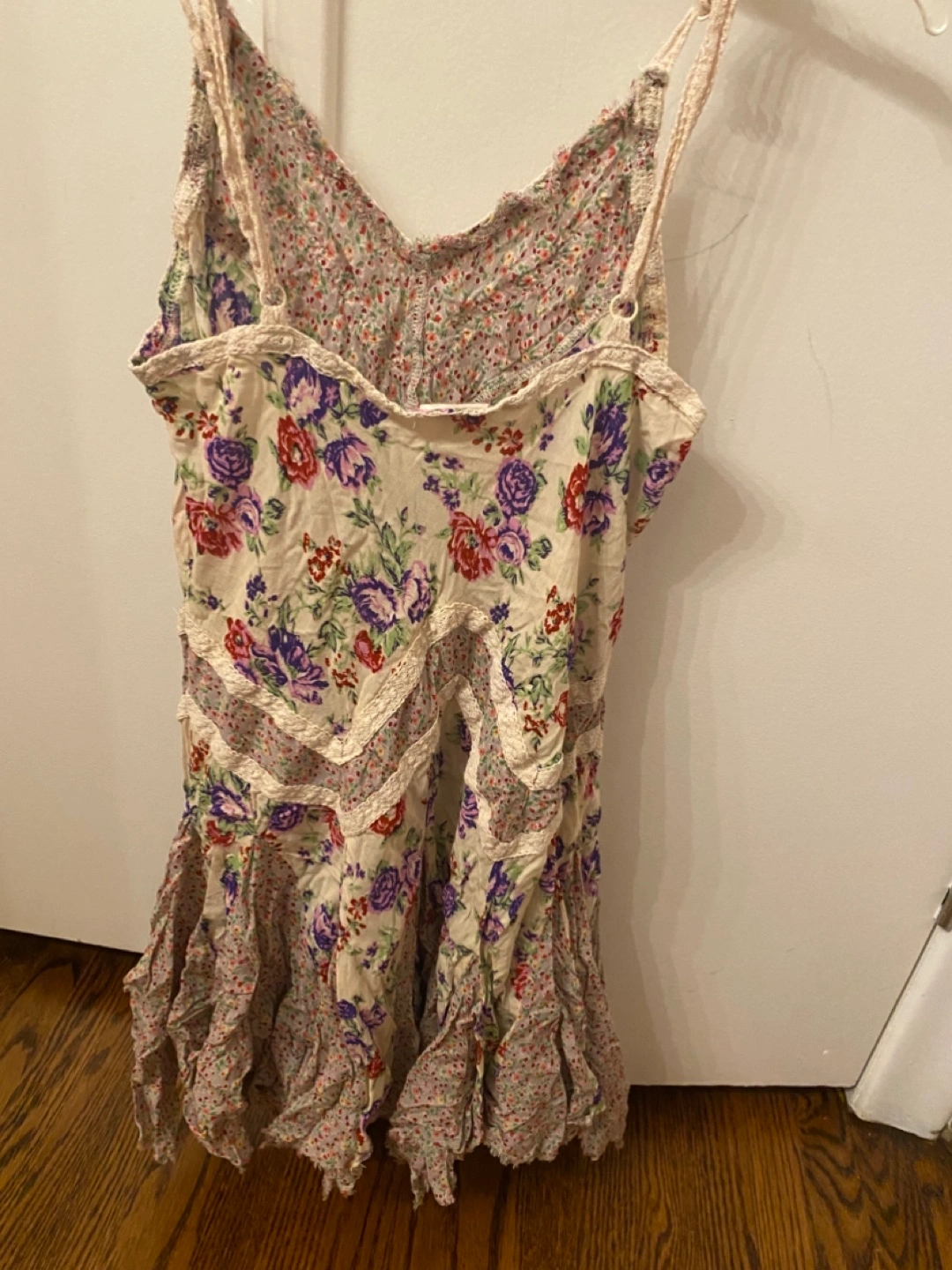 Selling an Intimately Free People dress in size XS. It features a beautiful floral pattern with lace trim. Perfect for the summer, whether over a swimsuit, hanging out at home or an outing.