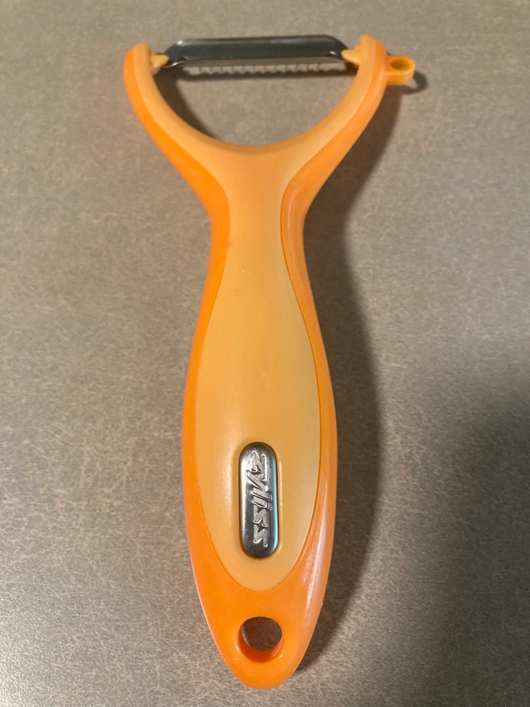 Free Zyliss Y peeler in orange. This handy kitchen tool is perfect for julienned carrots or creating zucchini noodles. Bought as recommended from the Oh She Glows cookbook.