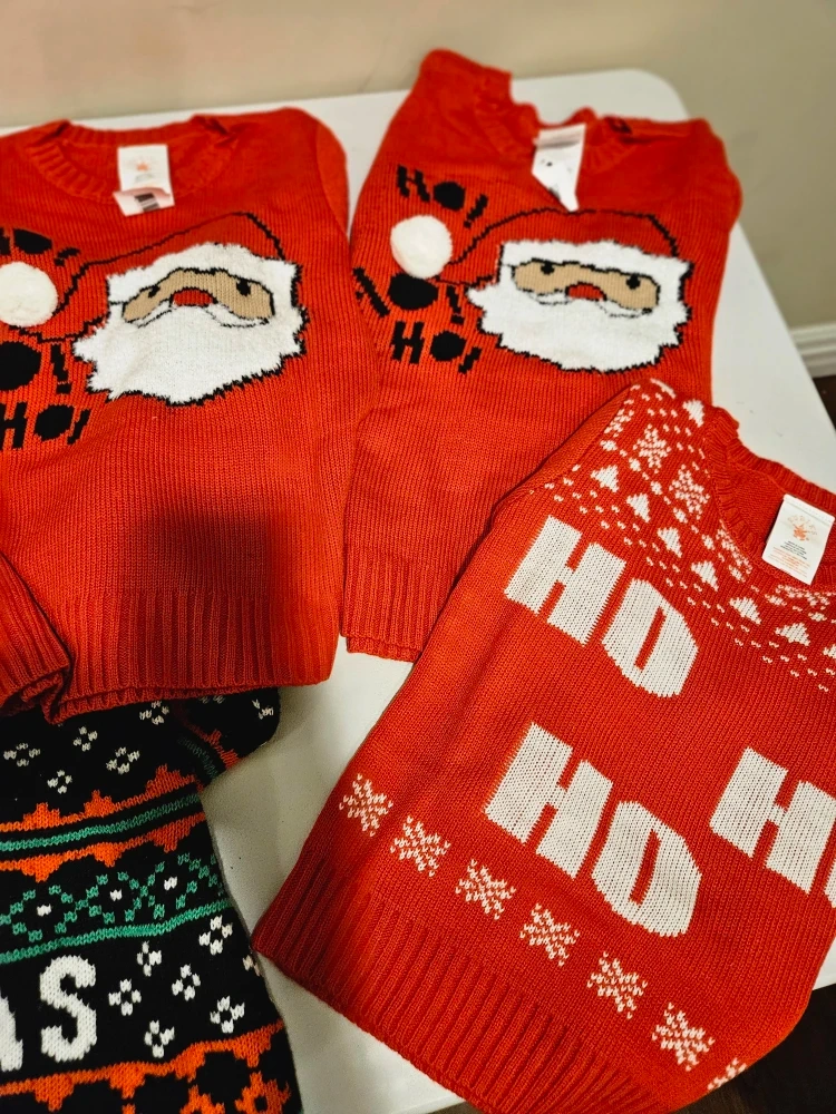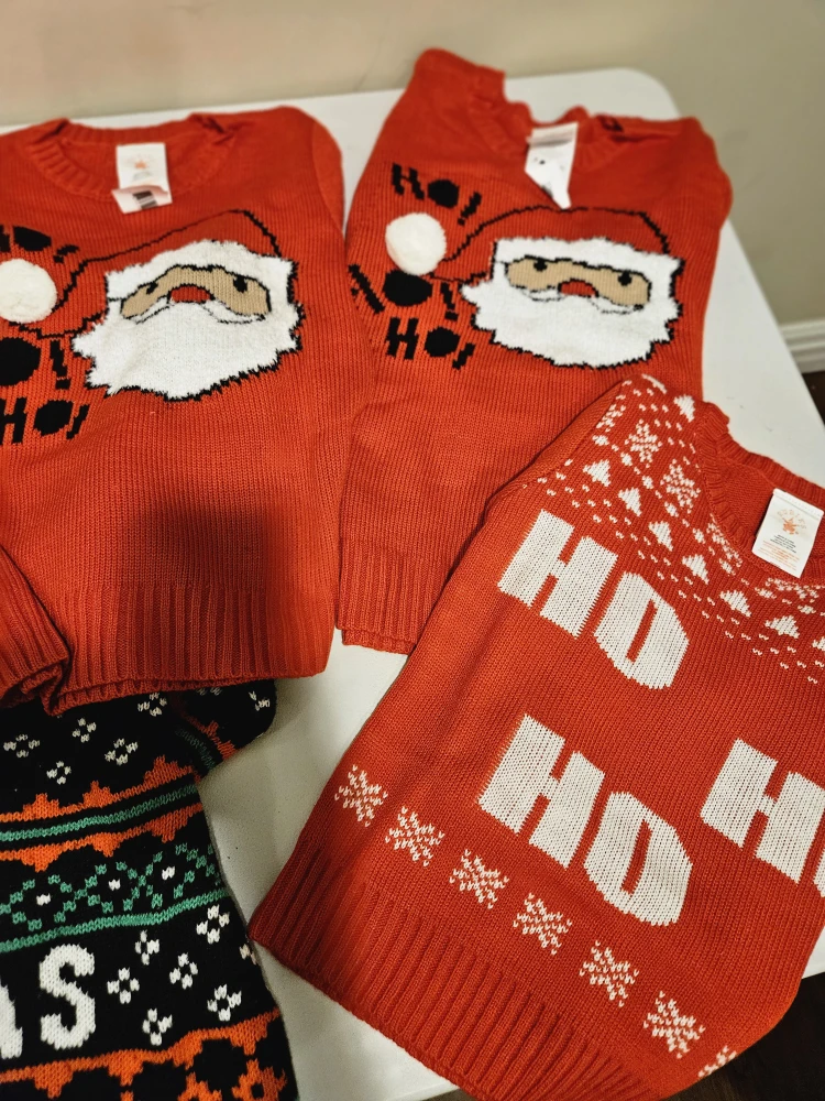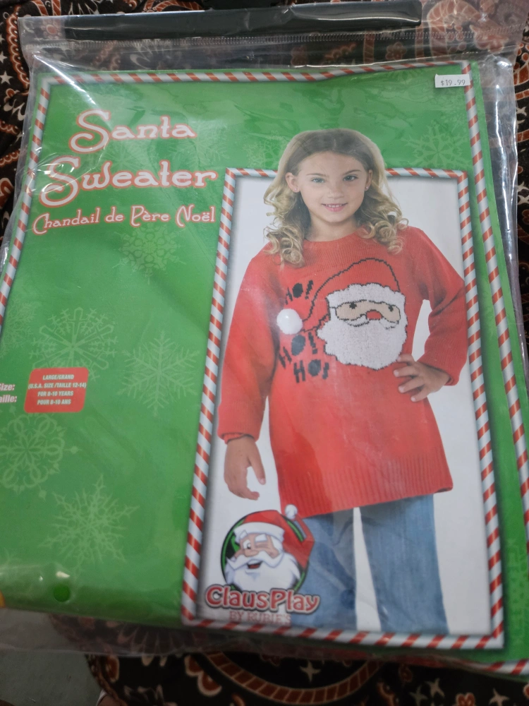 Get ready for the holidays with this ClausPlay Santa sweater! It's a size large (U.S.A. size 12-14) and suitable for kids aged 8-10 years. Perfect for Christmas festivities!