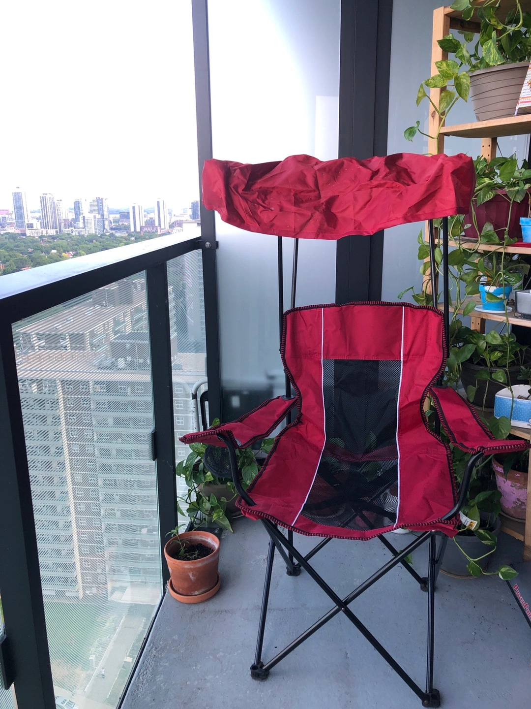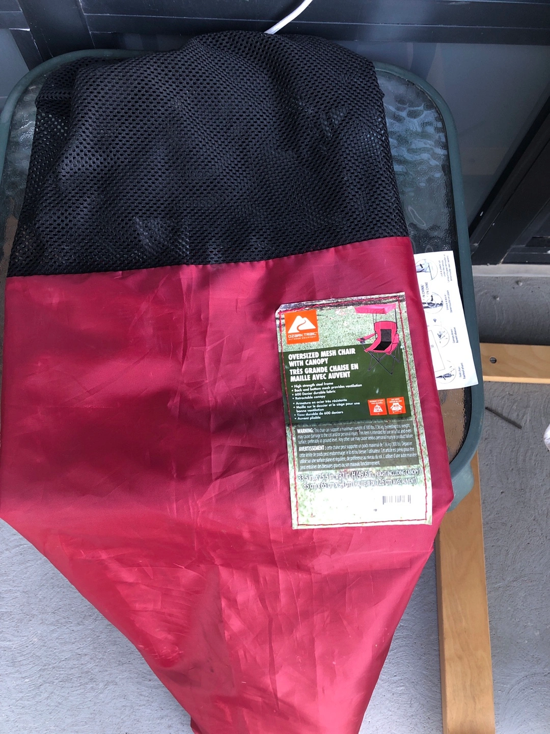 Get ready for summer with this Ozark Trail oversized mesh chair! It comes with a built-in canopy to keep you cool and shaded on those hot days. Perfect for camping, picnics, or just relaxing in your backyard. The chair is in great condition and comes with its carrying bag for easy transport and storage