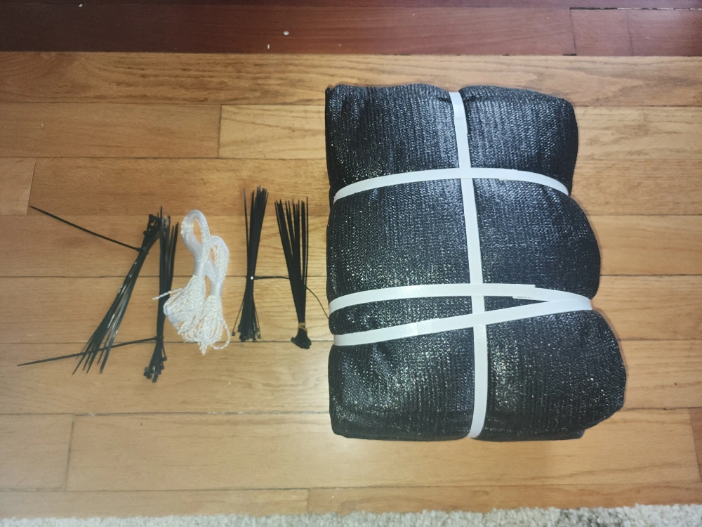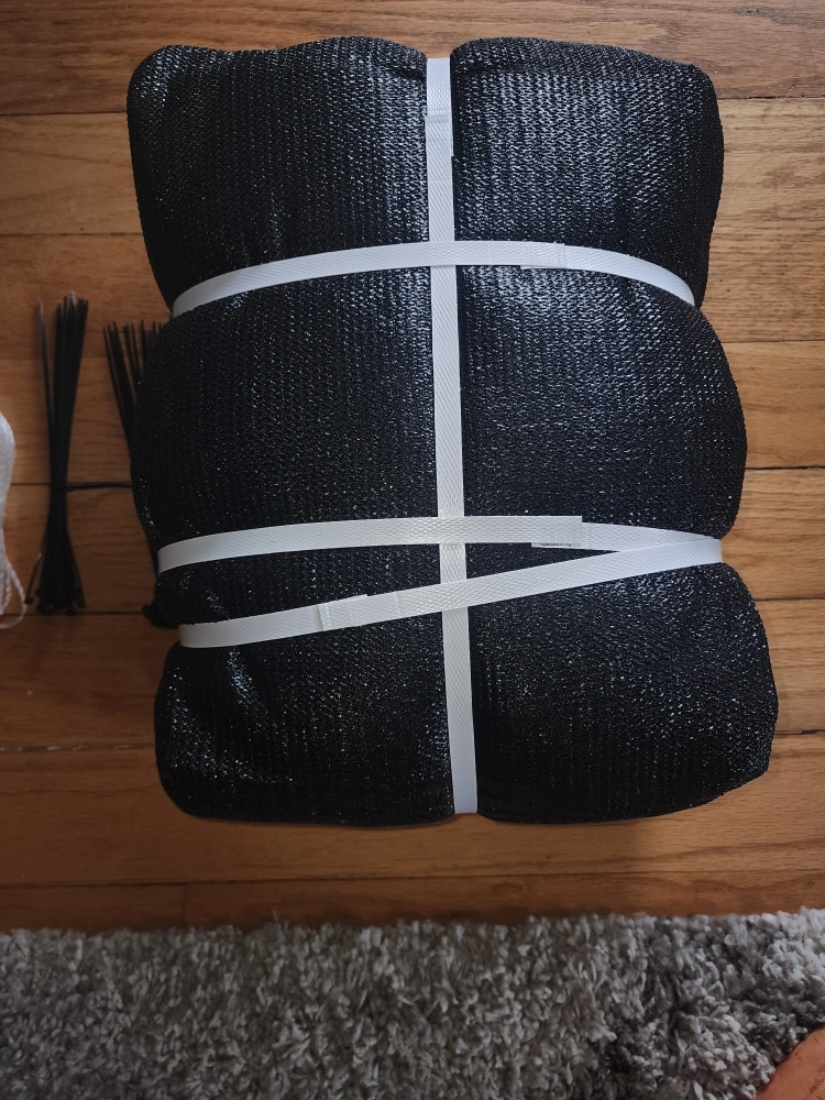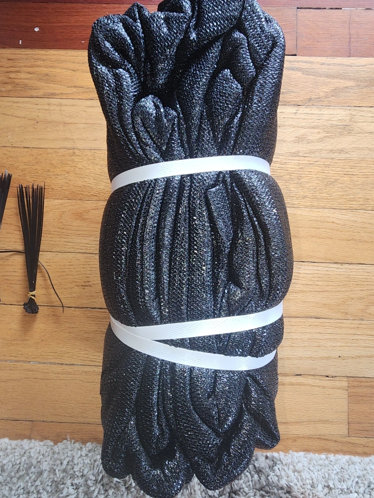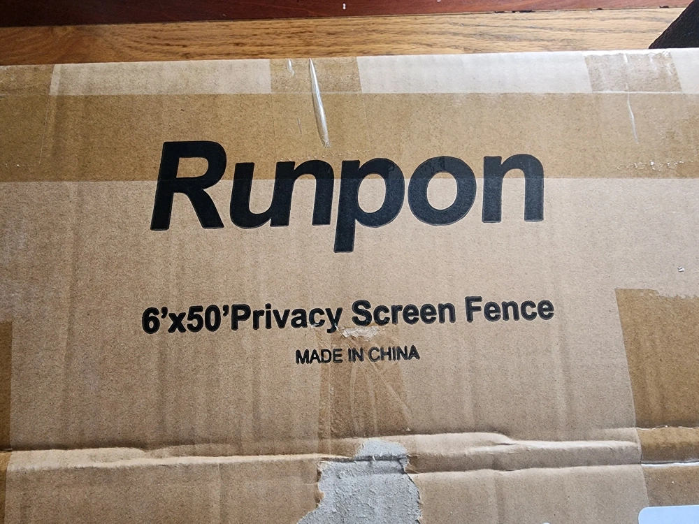 Selling 2 Runpon 6'x50' privacy screen fence in black. It's still in its original box and includes the necessary components for installation, such as zip ties and rope. Perfect for adding privacy to your yard or garden!