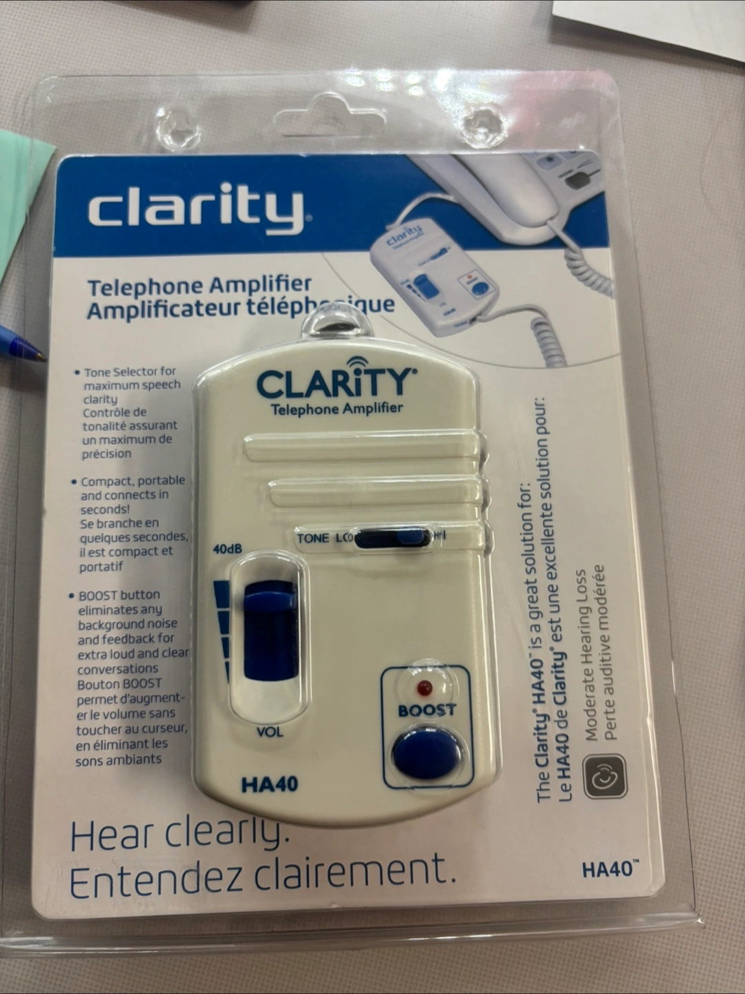 Selling a brand new Clarity HA40 Telephone Amplifier, still sealed in its original packaging! It's designed to make phone conversations clearer and louder.
