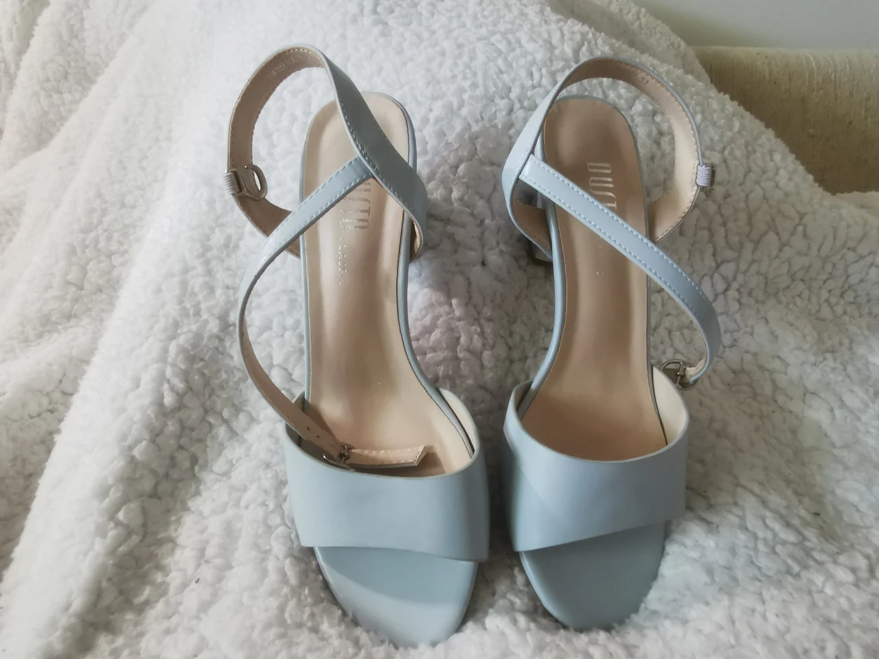 Cute pair of DUSTO heels in a lovely light blue colour! They are a size 37. Perfect for dressing up any outfit!