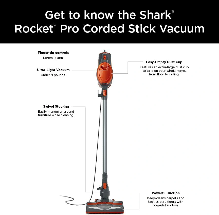 I'm selling a Shark Rocket Pro corded stick vacuum! It's an ultra-light vacuum, under 9 pounds. It features swivel steering to easily maneuver around furniture while cleaning. The vacuum has an easy-empty dust cup and powerful suction to deep-clean carpets and tackle bare floors with powerful suction!