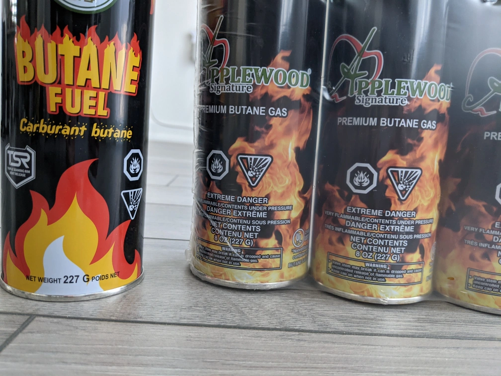I am selling a pack of brand new Applewood Premium Butane Gas canisters, each containing 227g of fuel, perfect for camping stoves, portable heaters, and culinary torches. This pack is factory-sealed and ready for your next adventure or gourmet creation. Also includes half bottle of Joyshare Butane Fuel.
