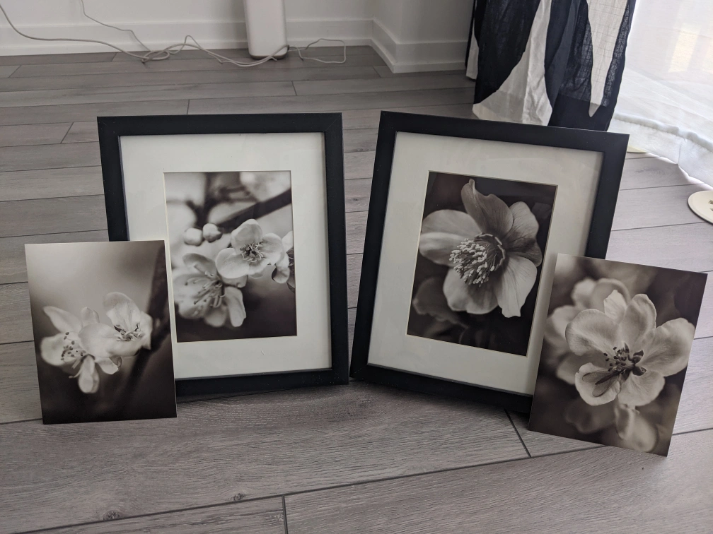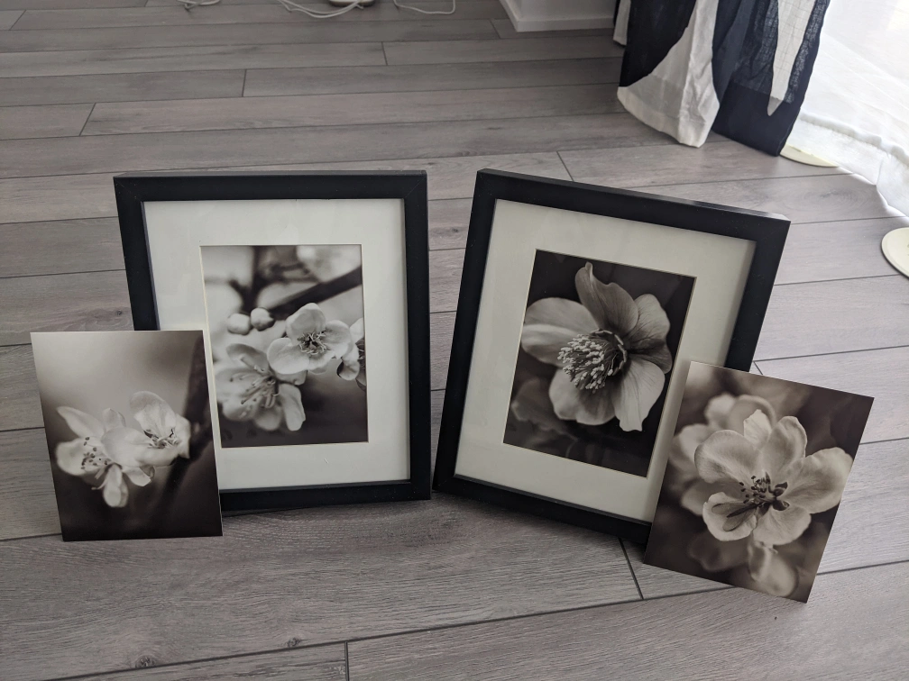 Add a touch of elegance to your home decor with this set of two Ikea framed floral prints and two accompanying floral art cards. Perfect for adding a subtle artistic flair to your space!