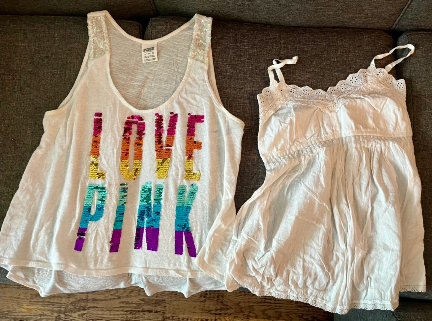 Selling a couple of cute tank tops! One is a Victoria's Secret PINK tank top in size XS. The other is an American Eagle Outfitters tank top in size 4. Both are in great condition and ready for a new home!