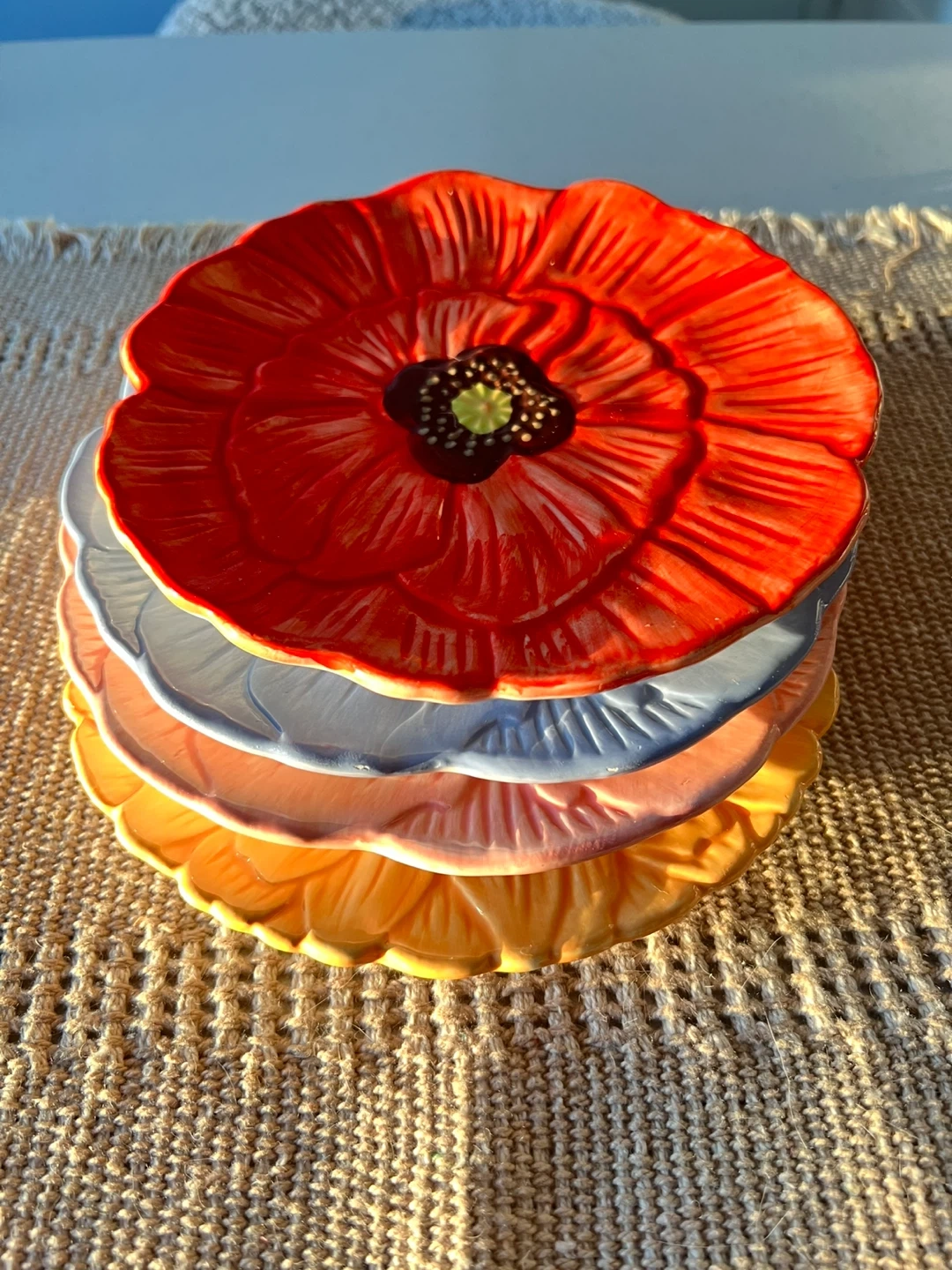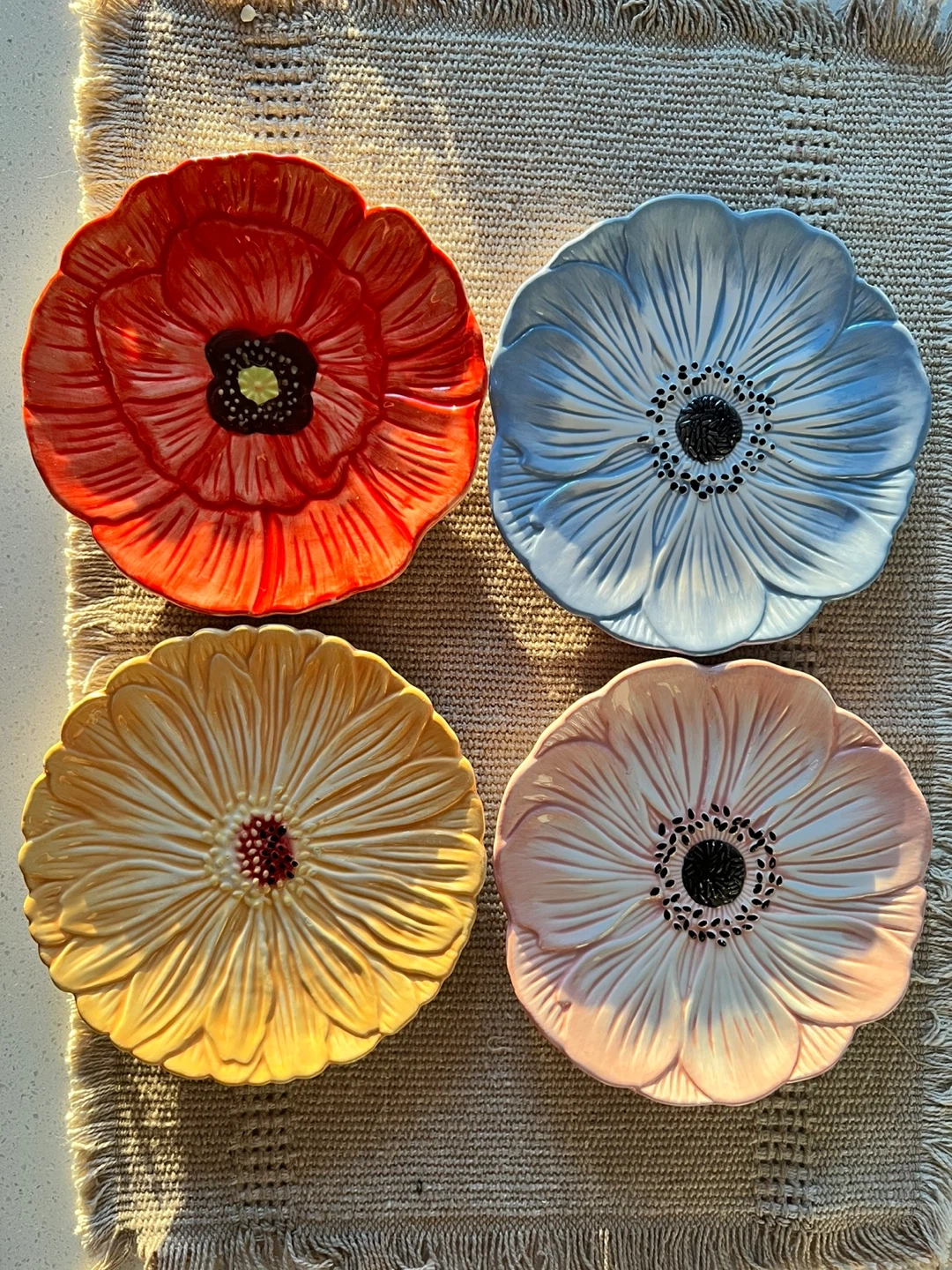Selling a gorgeous set of 4 ceramic plates shaped like flowers (Poppy/Anemone design).