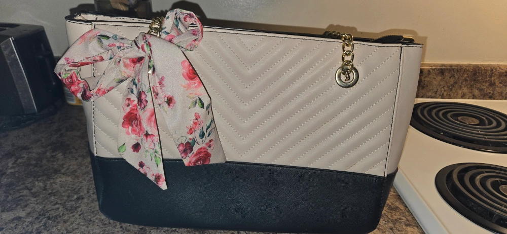 Laura Scott tote bag in good condition. It features a stylish design with a floral scarf accent. Perfect for everyday use