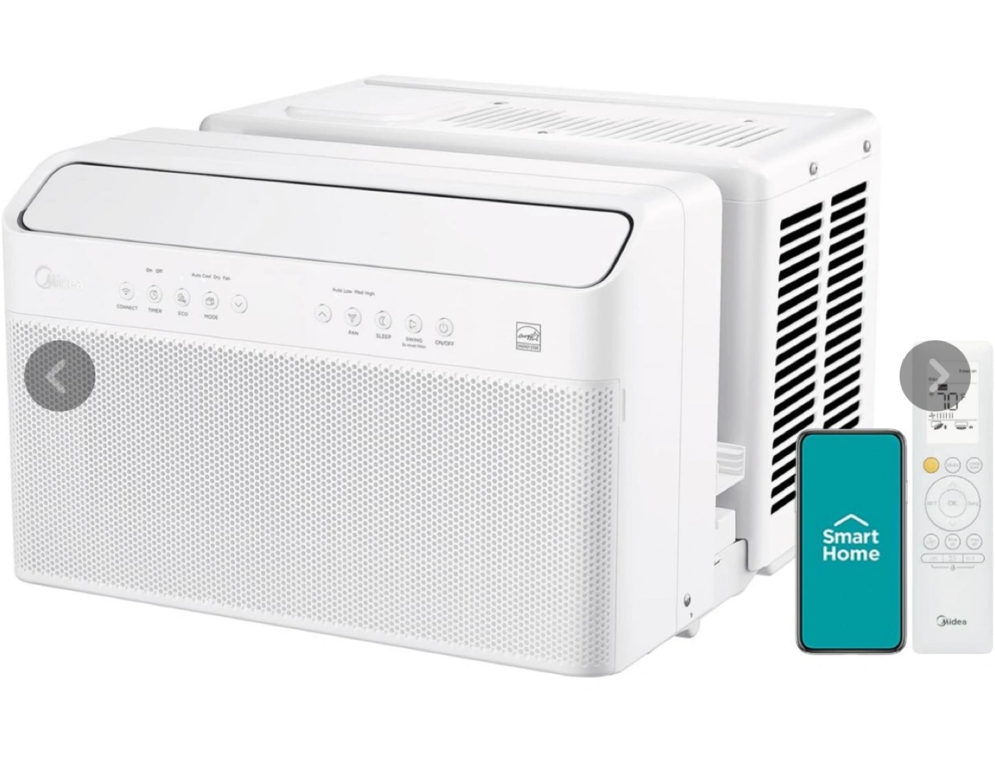 Selling a Midea window type air conditioner, model MAW08V1QWT. It's in great condition and ready to keep you cool! This model features 8000 BTU/h and a CEER of 15.0. It also has a smart home integration feature.
