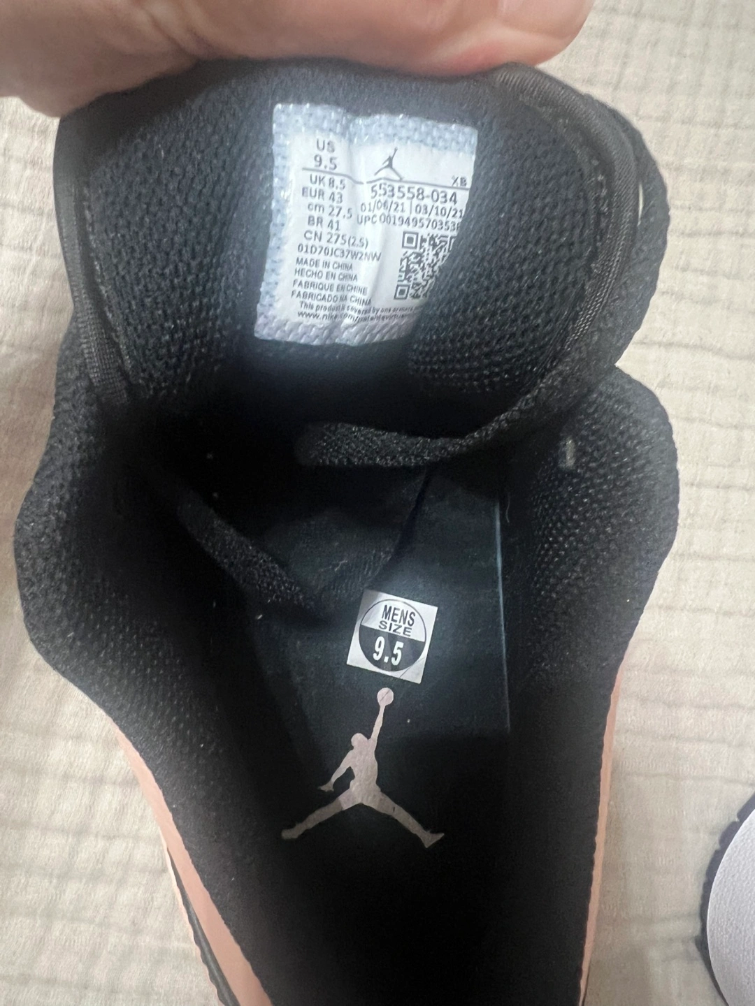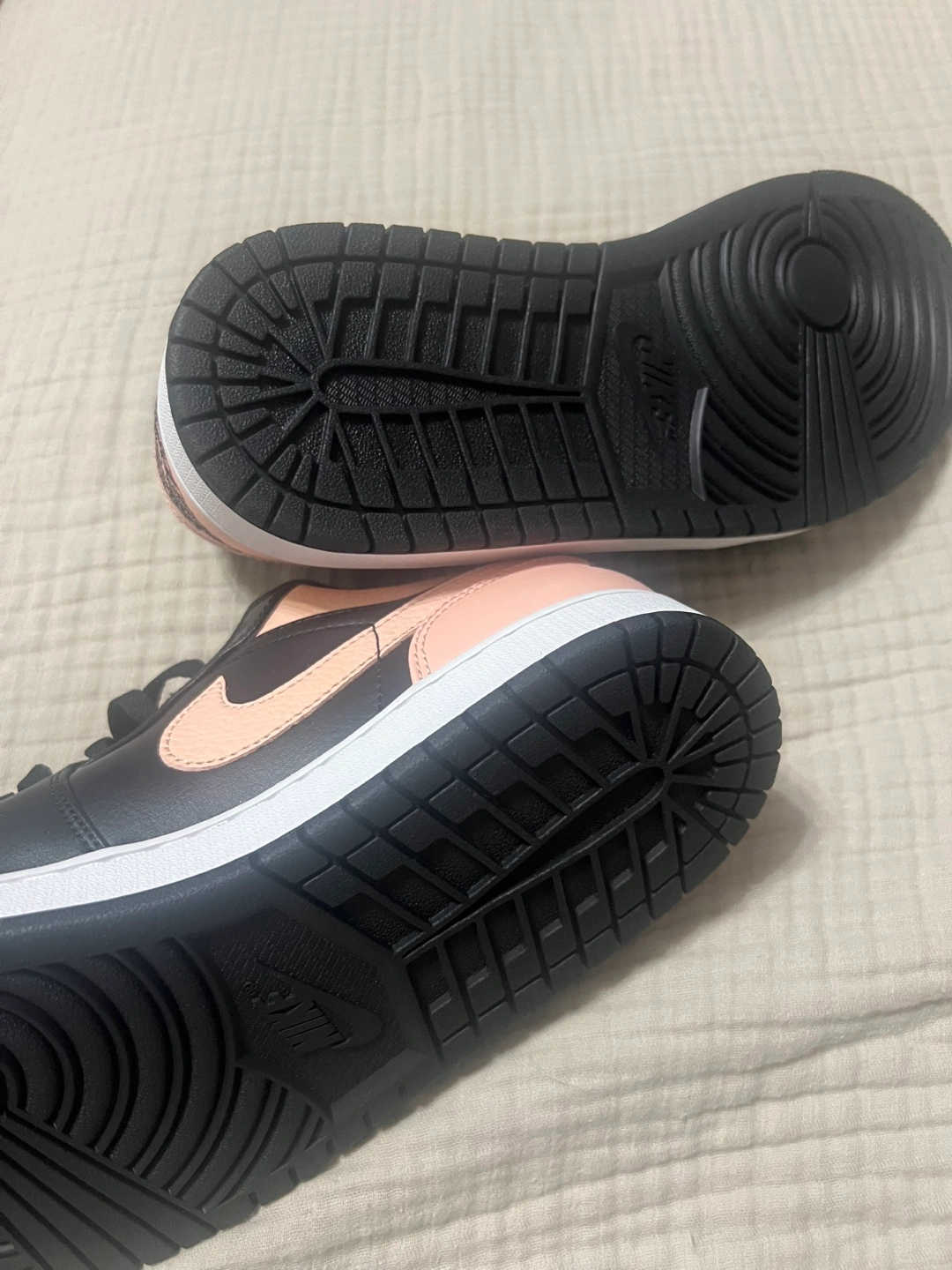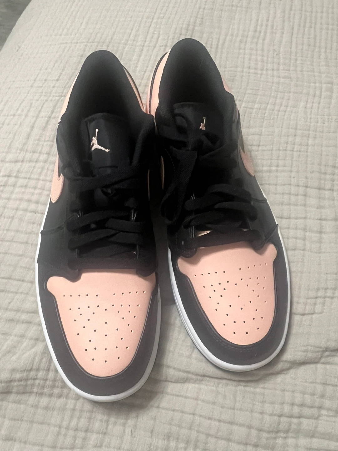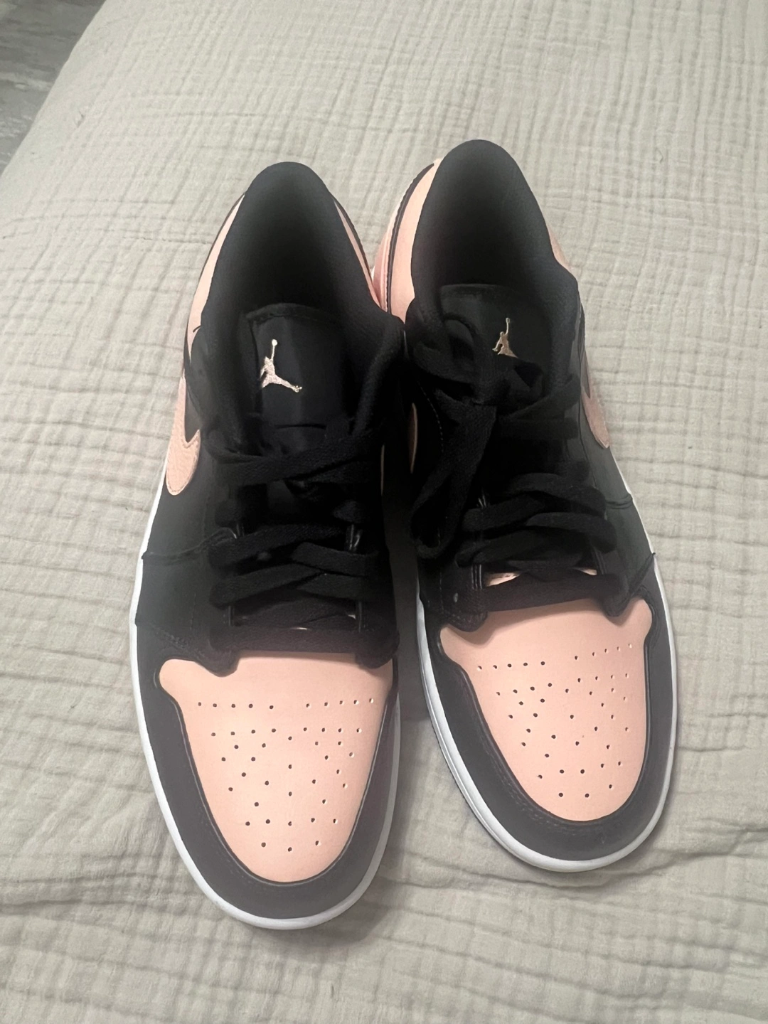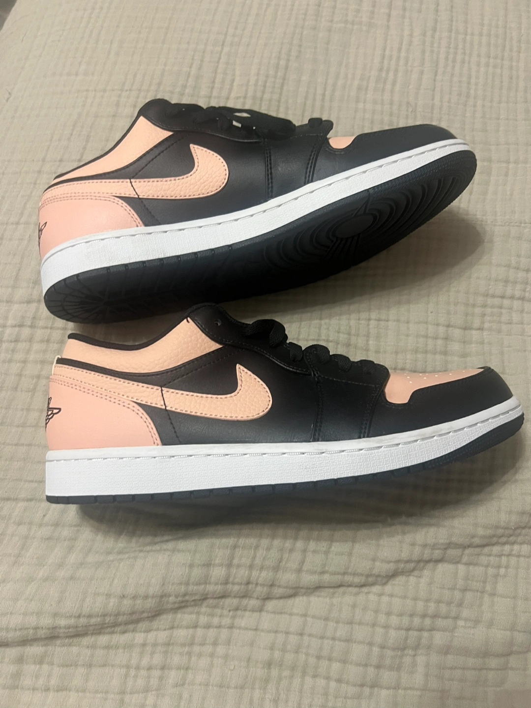 Selling a pair of Nike Air Jordan 1 Low SE sneakers. These come in a stylish black and salmon colorway. They are in great condition and ready for a new home!
