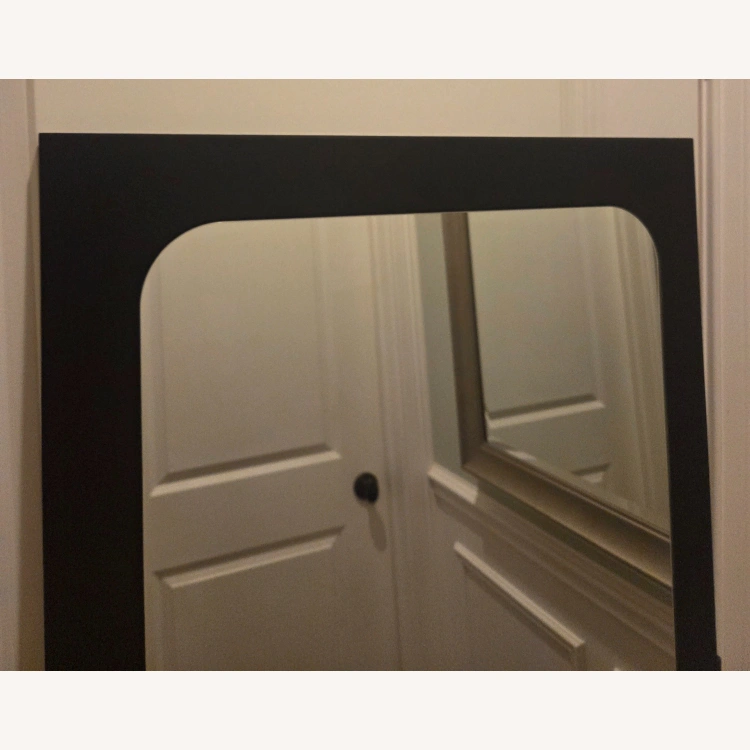 Here's a full-length mirror with a sleek black frame! It's in great condition and ready to brighten up your space. Mirror is raised off the wooden 1/2"