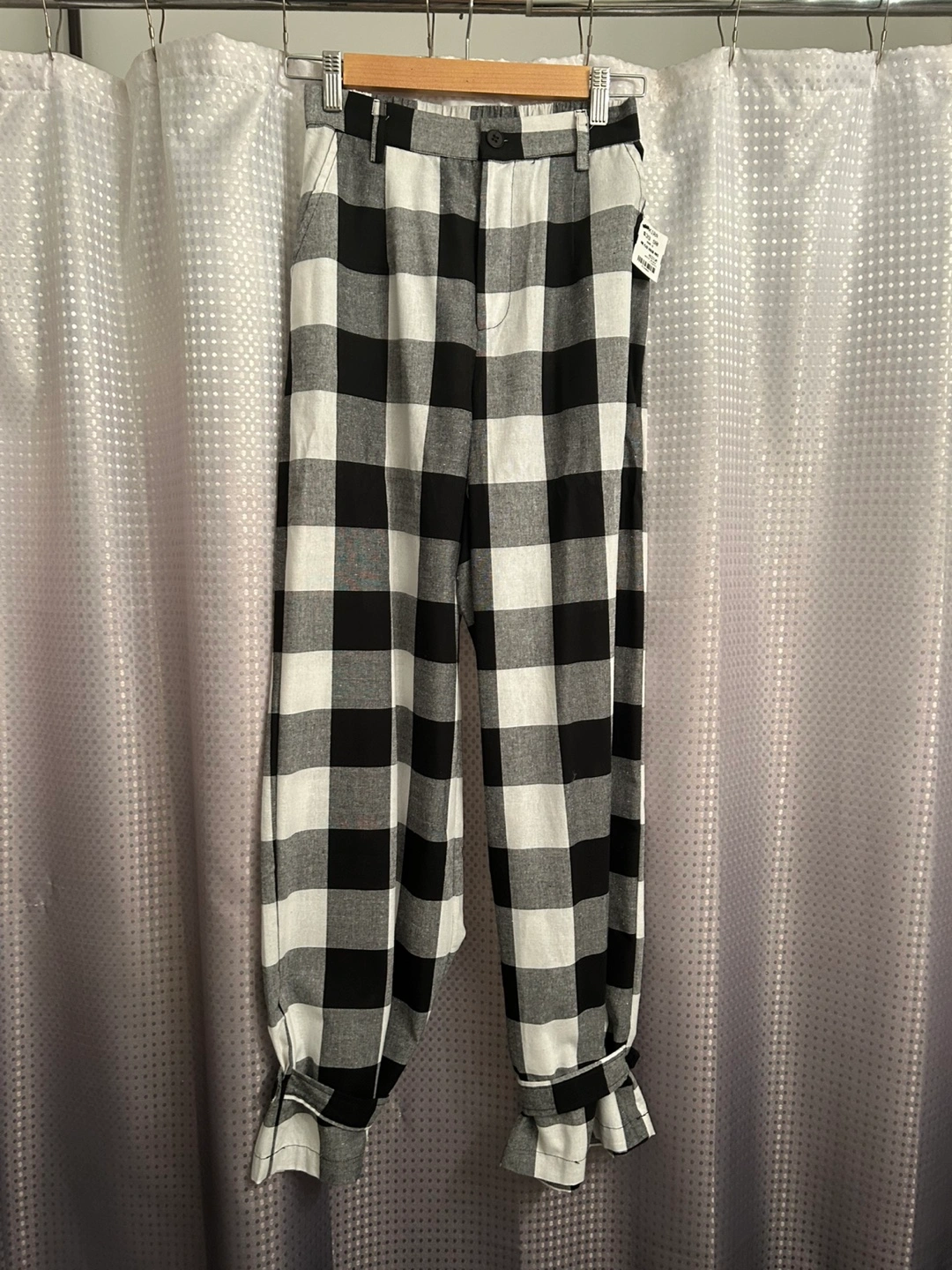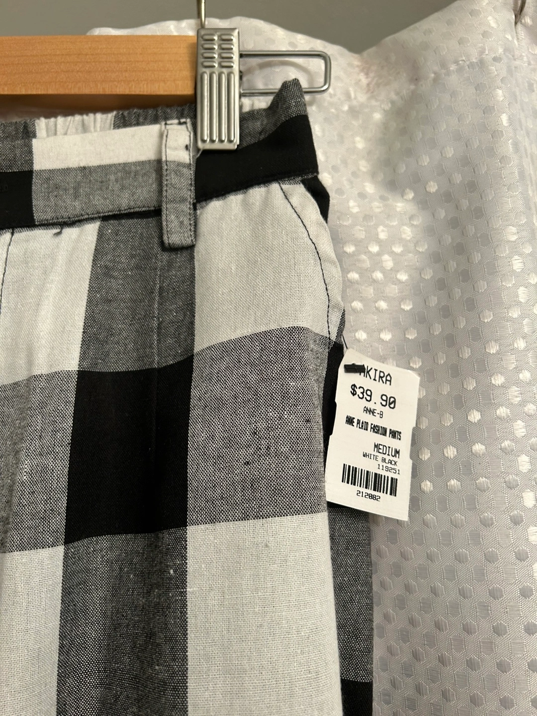 New M Akira black/white checked pants